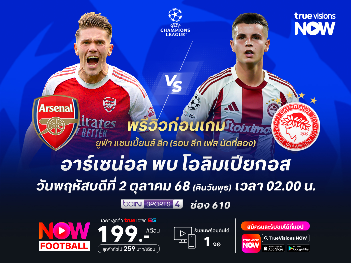 ศึก ยูฟ่า แชมเปี้ยนส์ ลีก 2025-26 รอบ ลีก เฟส นัดที่สอง อาร์เซน่อล จากอังกฤษ จะเล่นที่ เอมิเรตส์ สเตเดี้ยม รับการมาเยือนของ โอลิมเปียกอส จากกรีซ โดยเกมนี้ อาร์เซน่อล เจ้าถิ่น กำลังอยู่ในฟอร์มที่ยอดเยี่ยม หลังชนะ 6 จาก 8 รวมทุกรายการ และเกมนี้พวกเขาก็มีโอกาสสูงมากที่จะชนะใน แชมเปี้ยนส์ ลีก เป็นเกมที่สองติดต่อกัน ขณะที่ โอลิมเปียกอส ฟอร์มดีมากเช่นกัน หลังยังไม่แพ้ใครตั้งแต่เปิดซีซั่น แต่การมาเยือน อาร์เซน่อล วันนี้ดูจะเป็นงานยากมากสำหรับพวกเขา