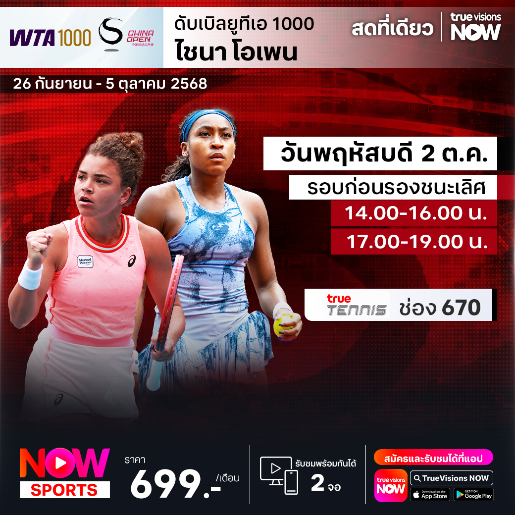 เทนนิสหญิง ดับเบิ้ลยูทีเอ ทัวร์ สัปดาห์นี้พบกับรายการใหญ่ที่สุดในทวีปเอเชีย ในรายการ ไชน่า โอเพ่น ที่กรุงปักกิ่ง ประเทศจีน นำโดยนักเทนนิสหญิงชื่อดังอย่าง อารีนา ซาบาเลนก้า และ อิกา ซิออนเทค ร่วมลุ้นกันว่าใครจะคว้าแชมป์รายการนี้ไปครอง ชมสด ครบทุกรอบ ที่ ทรูวิชั่นส์