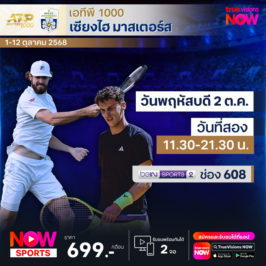เทนนิสชายรายการใหญ่ที่สุดในทวีปเอเชียกลับมาแข่งขันอีกครั้ง ในรายการ เอทีพี เซียงไฮ้ มาสเตอร์ส ซึ่งถือว่าเป็นรายการสูงสุด โดยเป็นรองแค่การแข่งขันแกรนด์สแลมเท่านั้น บรรดานักเทนนิสระดับโลกเข้าร่วมการแข่งขันอย่างคับคั่ง ร่วมลุ้นกันว่าใครจะคว้าแชมป์รายการใหญ่ที่สุดบนทวีปเอเชียไปครอง ชมสด ครบทุกรอบ ที่ ทรูวิชั่นส์