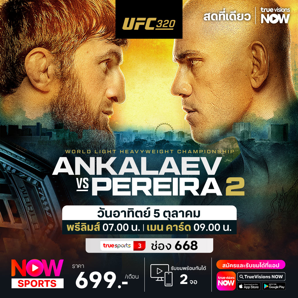 ศึกยูเอฟซี 320 คู่เอกเป็นศึกรีแมตช์ ไฟต์ล้างตาระหว่าง มาโกเม็ด อันคาลาเยฟ แชมป์รุ่นไลต์เฮฟวี่เวตคนปัจจุบันจากรัสเซีย กับ อดีตแชมป์รุ่นนี้จากบราซิล อเล็กซ์ เปเฮร่า โดยมีเข็มขัดแชมป์เป็นเดิมพัน ร่วมด้วยไฟต์ชิงแชมป์รุ่นแบนตั้มเวต เมร้าบ ดีวาลิวิลี่ เจ้าของตำแหน่งจากจอร์เจีย พบผู้ท้าชิงชาวอเมริกัน คอรี่ แซนด์เฮเก้น ชมสด เอ็กซ์คลูซีฟ ตั้งแต่ช่วงพรีลิมส์ถึงเมน คาร์ด ที่ ทรูวิชั่นส์