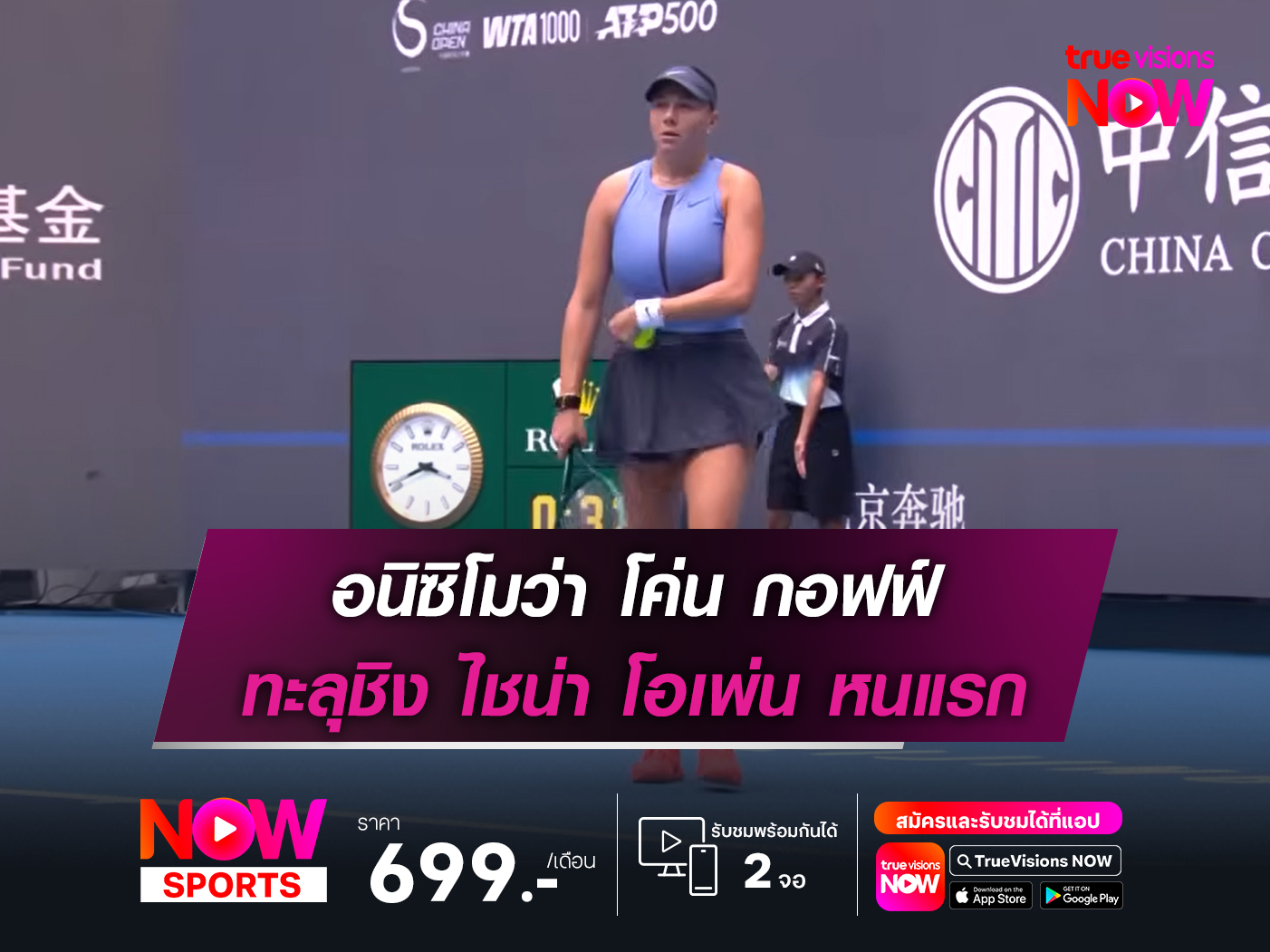 “อนิซิโมว่า” โค่น “กอฟฟ์” ทะลุชิง “ไชน่า โอเพ่น” ครั้งแรก เข้าชิง WTA1000 เป็นรายการที่สองในซีซั่นนี้