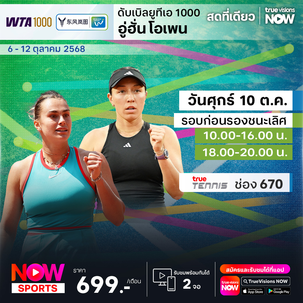 เทนนิสหญิง ดับเบิลยูทีเอ ทัวร์ รายการใหญ่ ยังคงแข่งขันในประเทศจีนอย่างต่อเนื่อง สัปดาห์นี้ไปแข่งขันกันที่เมือง อู่ฮั่น เป็นรายการระดับ ระดับ WTA 1000 รายการสุดท้ายของปี บรรดานักเทนนิสระดับโลกเข้าร่วมการแข่งขันอย่างคับคั่ง รวมถึงนักเทนนิสเจ้าถิ่น เจิ้ง ฉินเหวิน ร่วมลุ้นกันว่าใครจะคว้าแชมป์รายการนี้ไปครอง ชมสด ครบทุกรอบ ที่ ทรูวิชั่นส์
