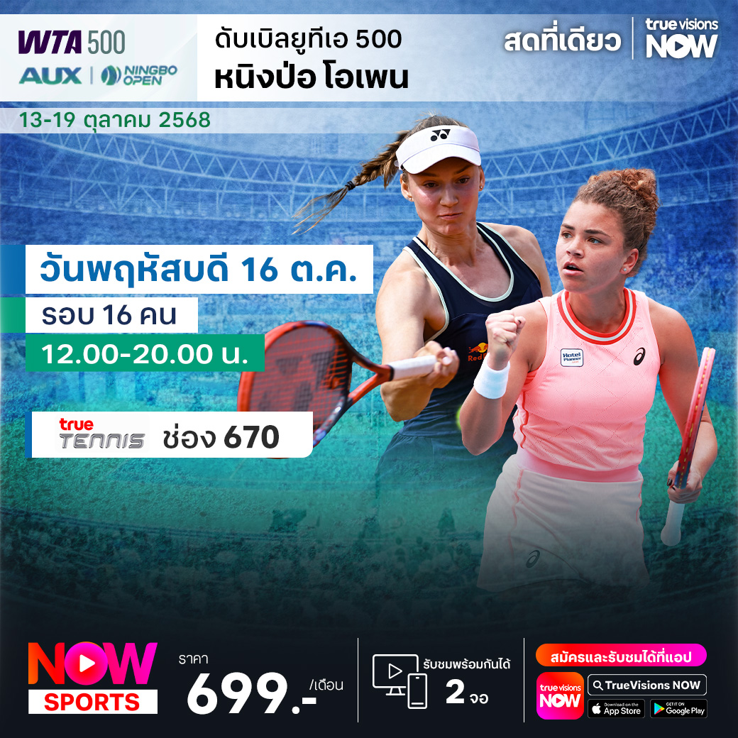 ติดตามต่อเนื่องกับเทนนิสหญิง ดับเบิ้ลยูทีเอ ทัวร์ รายการใหญ่จากประเทศจีน ในสัปดาห์นี้พบกับรายการ หนิงป๋อ โอเพ่น ซึ่งเป็นรายการระดับ WTA 500 บรรดานักเทนนิสชื่อดังเข้าร่วมกันคับคั่ง เพื่อทำอันดับลุ้นไปแข่งขันในรายการสุดท้ายของปีอย่าง WTA Finals ร่วมลุ้นว่าใครจะคว้าแชมป์รายการนี้ไปครอง ชมสด ครบทุกรอบ ที่ ทรูวิชั่นส์