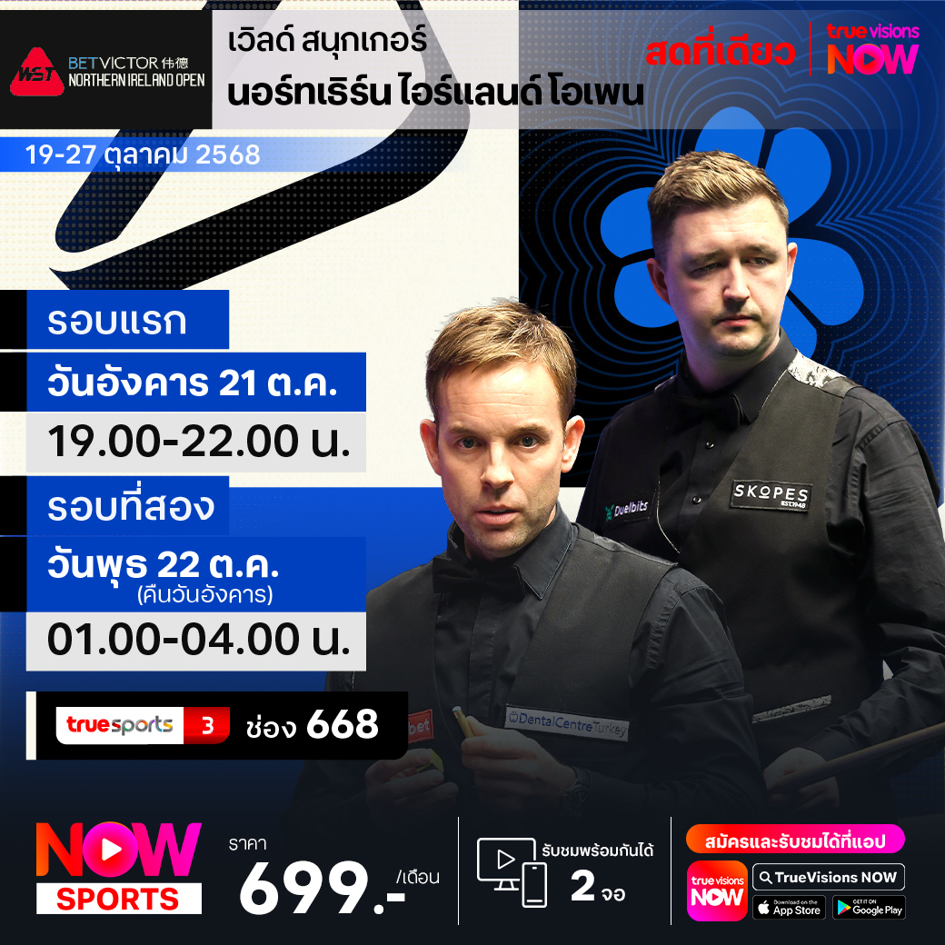 ศึก เวิลด์ สนุกเกอร์ ทัวร์ เก็บคะแนนสะสมโลกฤดูกาล 2025 กลับมาแข่งในสหราชอาณาจักรอีกครั้ง สัปดาห์นี้ บรรดานักสนุกเกอร์ระดับโลกขวัญใจแฟนๆ ร่วมศึกใหญ่รายการเก่าแก่ระดับคลาสสิก นอร์ธเทิร์น ไอร์แลนด์ โอเพ่น รายการที่ 2