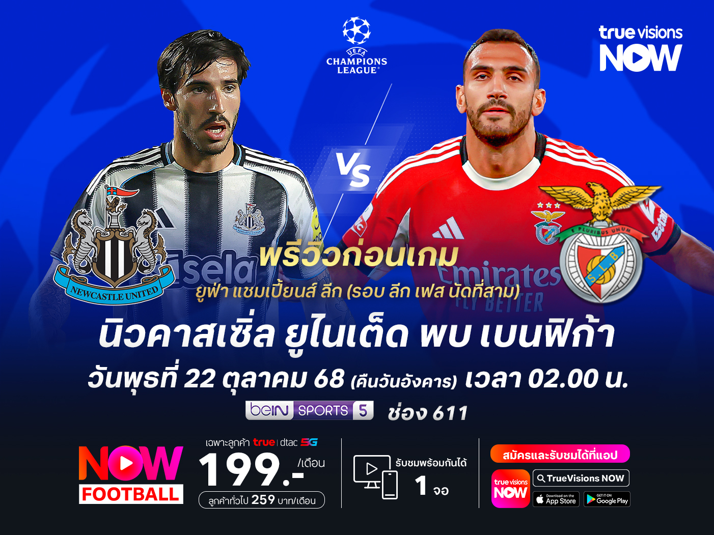 ศึก ยูฟ่า แชมเปี้ยนส์ ลีก 2025-26 รอบ ลีก เฟส นัดที่สาม นิวคาสเซิ่ล ยูไนเต็ด จากอังกฤษ จะเล่นที่ เซนต์ เจมส์ พาร์ค รับการมาเยือนของ เบนฟิก้า จากโปรตุเกส โดยเกมนี้ นิวคาสเซิ่ล เจ้าถิ่น ฟอร์มช่วงหลังไม่ค่อยแน่นอนเท่าไหร่นัก พวกเขามีสถิติชนะ 3 แพ้ 2 จาก 5 นัดหลังสุดในทุกรายการ ส่วน เบนฟิก้า ผลงานดีขึ้นในช่วงหลัง แพ้ยาก และพวกเขาก็หวังจะบุกมาแบ่งแต้มในเกมนี้กลับออกไปให้ได้ หลังยังไม่มีแต้มเลยในการเล่น แชมเปี้ยนส์ ลีก 2 นัดที่ผ่านมา