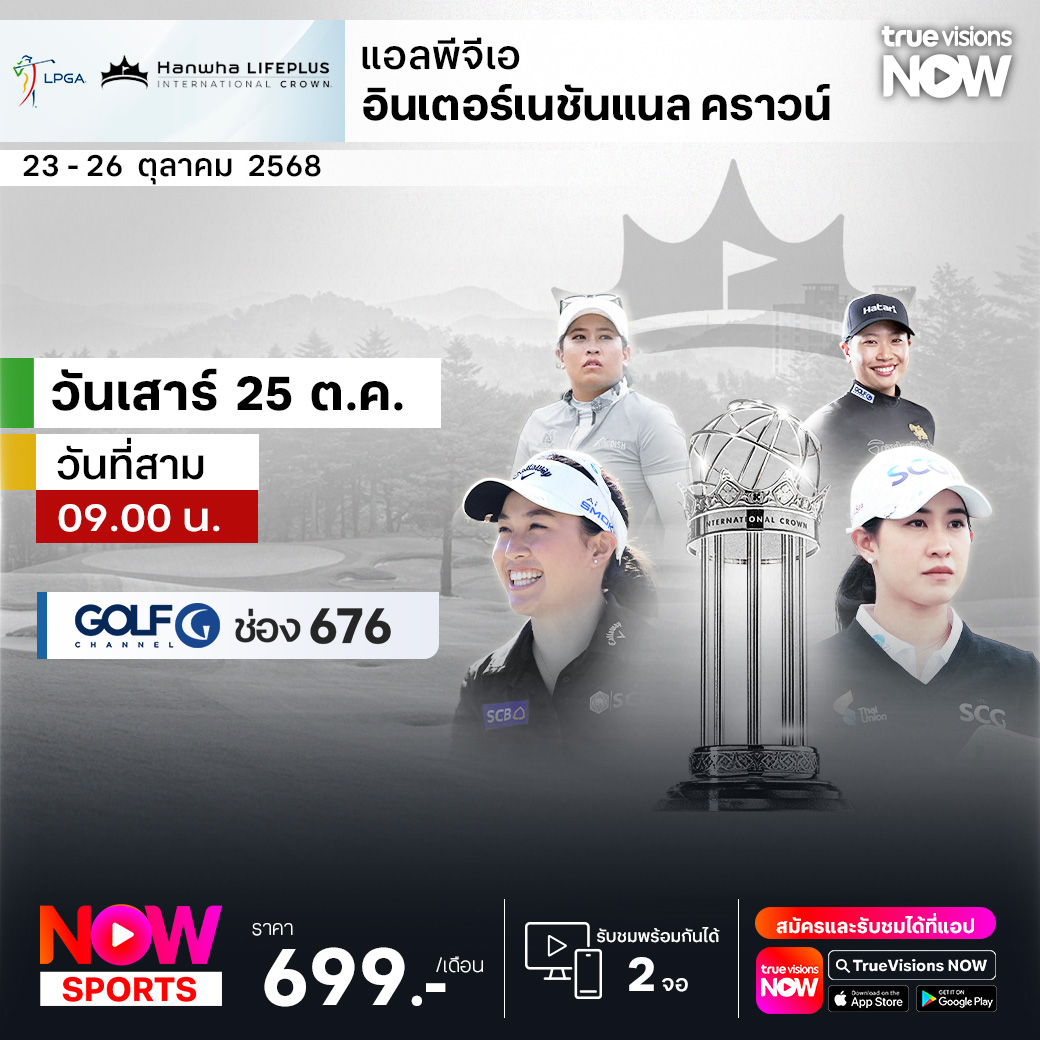 กอล์ฟหญิง แอลพีจีเอ ทัวร์ ชมกันต่อในการแข่งขันที่เกาหลีใต้ แต่แปลี่ยนบรรยากาศมาติดตามการแข่งขันประเภททีม ซึ่งมีทั้งหมด 8 ชาติเข้าร่วมลุ้นแชมป์ ในรายการ อินเตอร์เนชั่นแนล คราวน์ ที่สนาม ไพน์ บีช กอล์ฟ คลับ ในเมือง แฮนัม-กุน โดยมีเงินรางวัลรวมให้ชิงกัน 2,000,000 เหรียญสหรัฐฯ ปีที่แล้ว จีโน่ ธิติกุล มือ 1 ของโลกคนปัจจุบัน นำทีมโปรสาวไทยประกาศศักดา คว้าตำแหน่งแชมป์มาครองอย่างยิ่งใหญ่ ส่งใจเชียร์ให้ทีมไทยป้องกันแชมป์ปีนี้ ชมสดครบทุกรอบ ที่ ทรูวิชั่นส์