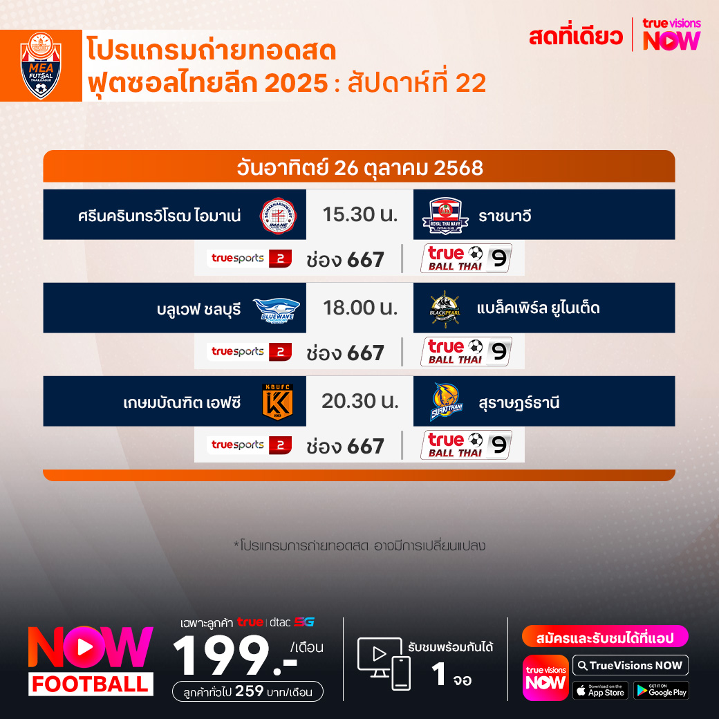 ศรีนครินทรวิโรฒ ไอมาเน่ พบ ราชนาวี เวลา 15.30 ทางช่อง TS 2 (667) / True Ball Thai 9 (NOW)