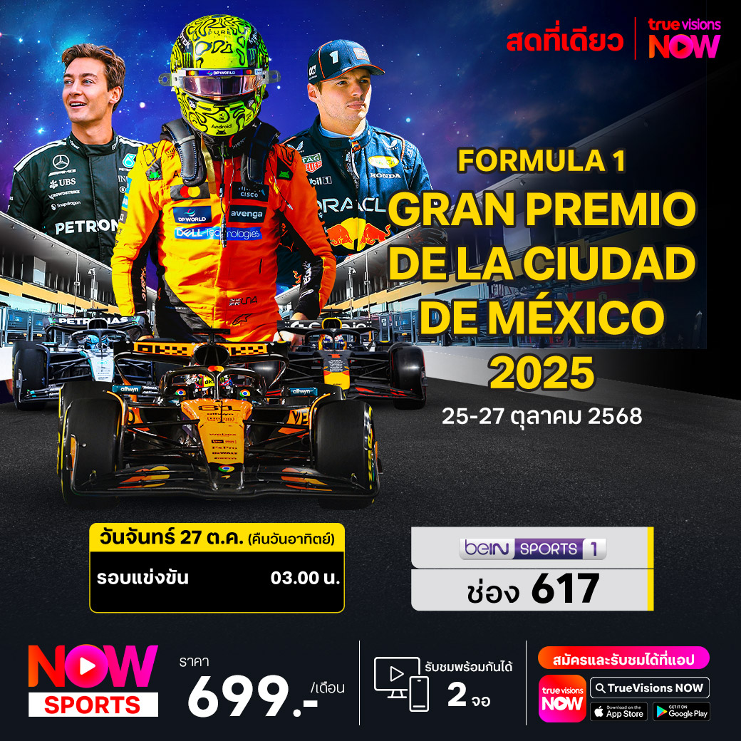 ศึก ฟอร์มูล่า วัน เดินทางมาถึงช่วงโค้งสุดท้ายของฤดูกาล 2025 แล้ว ความเข้มข้น ดุเดือด เร้าใจ ยิ่งเพิ่มขึ้นตามลำดับ เพราะผลงานตั้งแต่ช่วงนี้เป็นต้นไปถือว่าสำคัญและมีความหมายสุดๆ สัปดาห์นี้พบกับรายการ กรังด์ปรีซ์ ออฟ เม็กซิโก ที่สังเวียน เอร์มาโนส ฮ็อดริเกซ เซอร์กิต ประเทศเม็กซิโก ชมสด ครบทุกช่วงการแข่งขัน ที่ ทรูวิชั่นส์