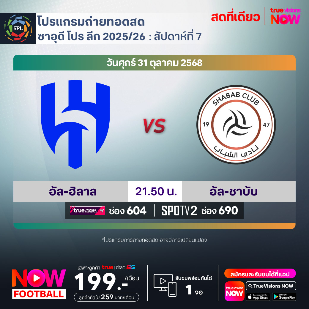 Al Hilal vs Al Shabab เวลา 21.50-23.50 ทางช่องTPF 4(604) / SPOTV2 (690)