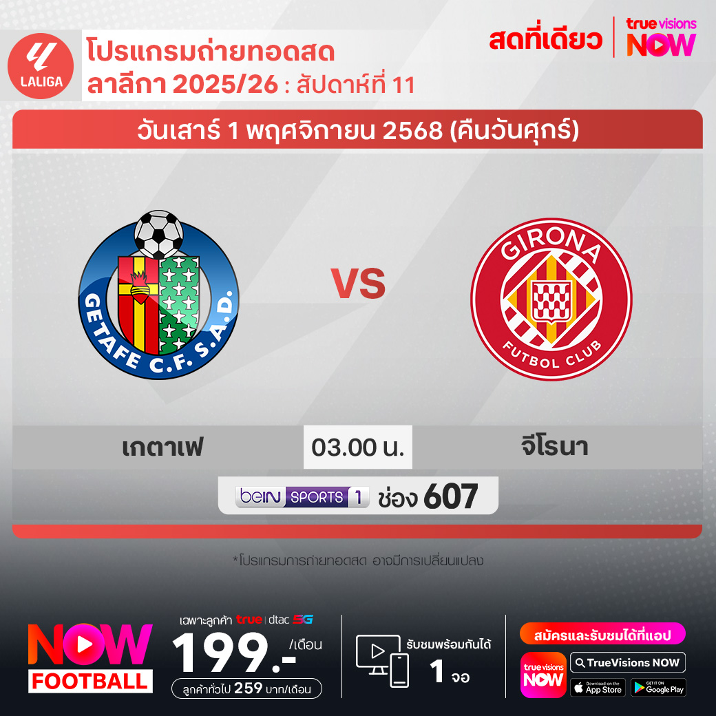 Getafe vs Girona เวลา 03.00-05.00 ทางช่อง beIN 1 (607)