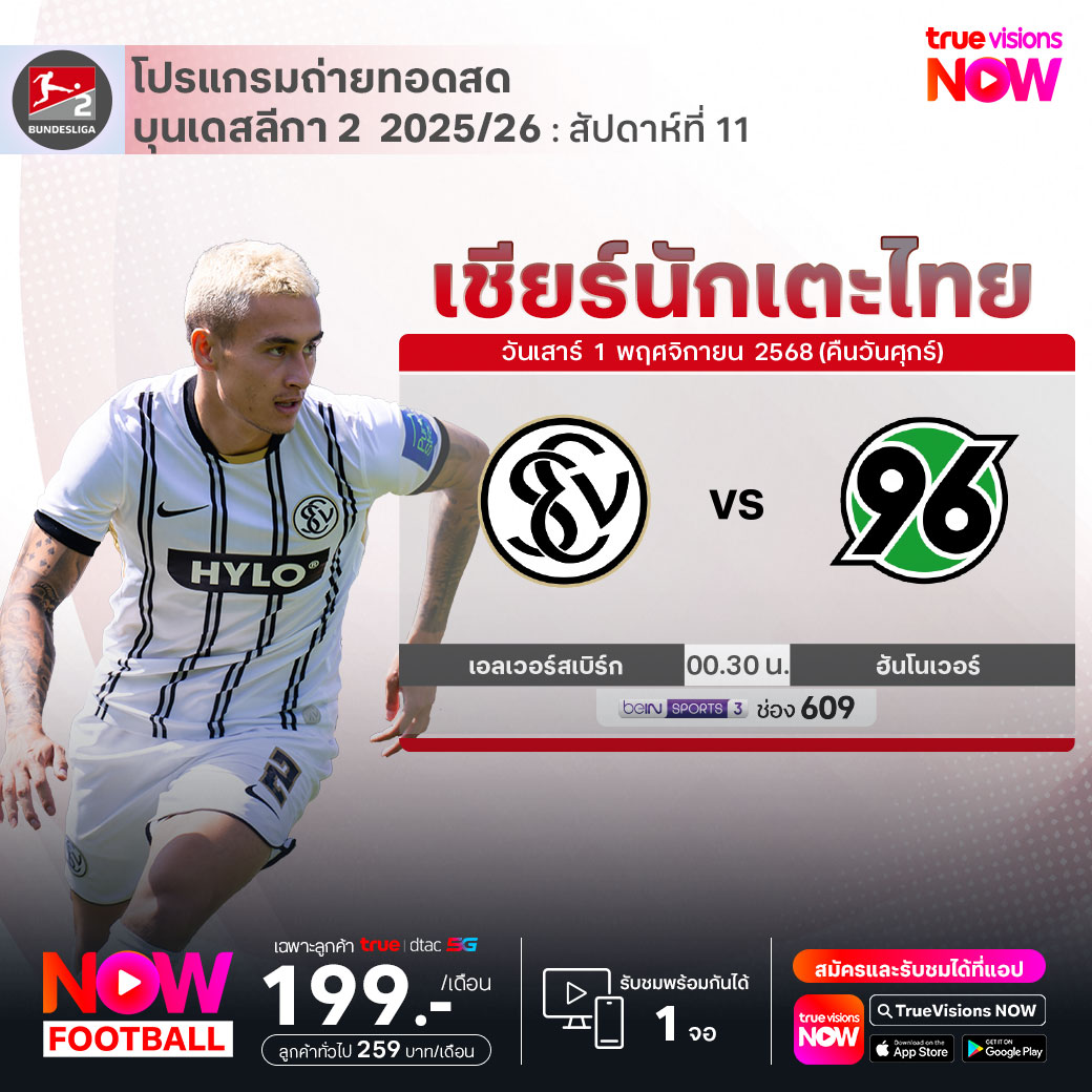 Elversberg vs Hannover เวลา 00.30-02.30 ทางช่อง beIN 3 (609)