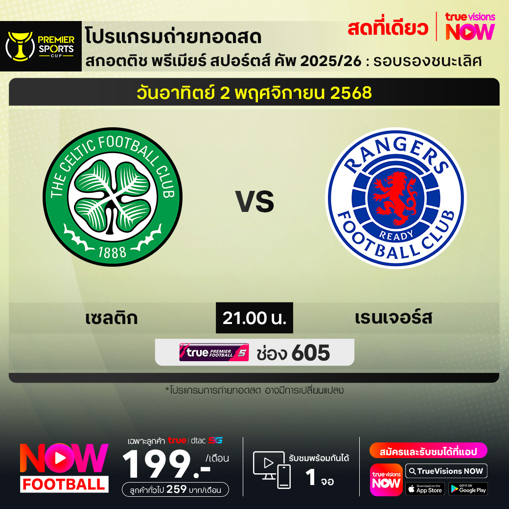 Celtic vs Rangers เวลา 21.00-23.00 ทางช่องTPF 5(605)