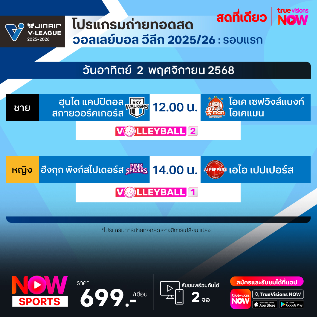 ฮุนได แคปปิตอล สกายวอร์คเกอร์ส พบ โอเค เซฟวิงส์แบงก์ โอเคแมน เวลา 12.00 ทางช่อง Volleyball 2