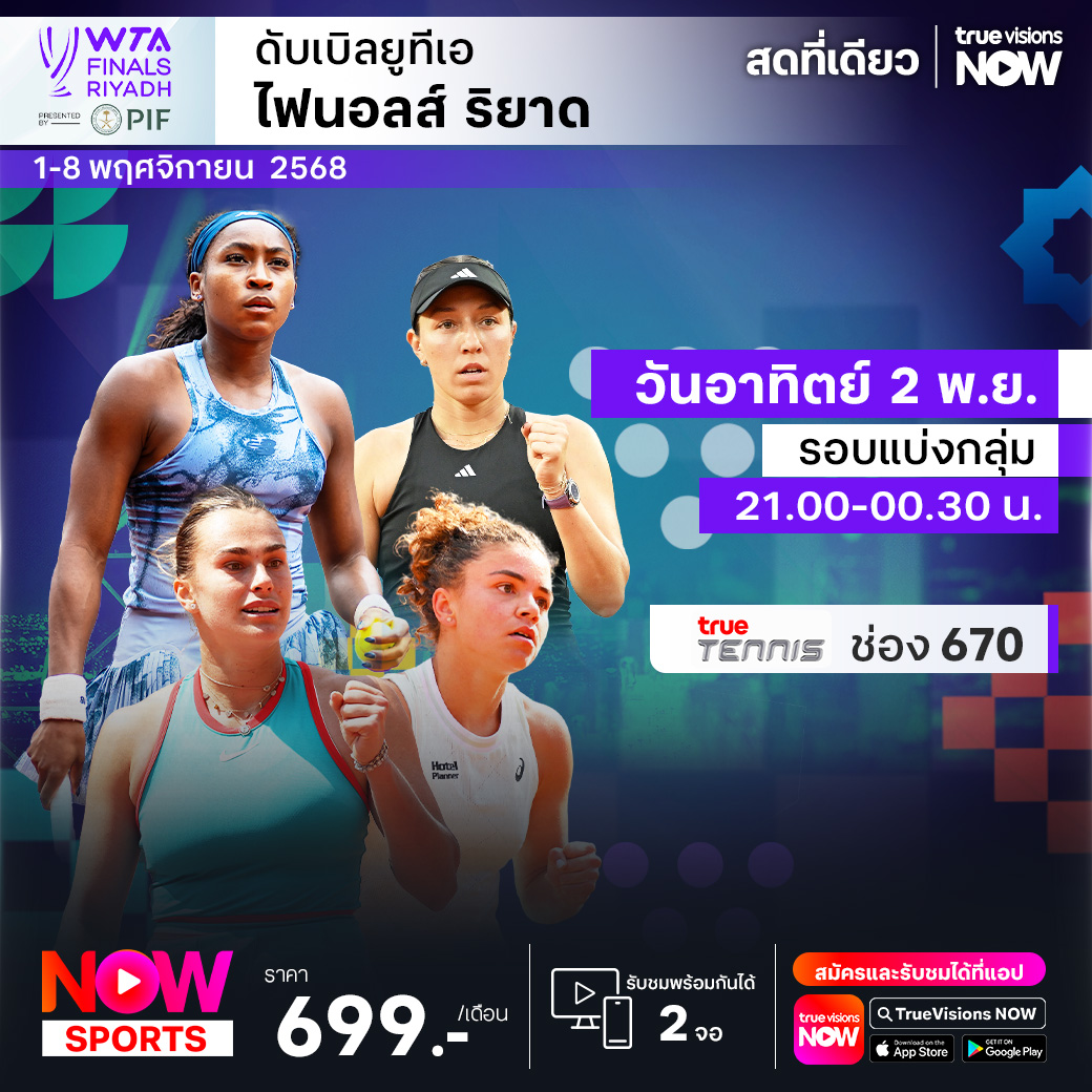 เทนนิสหญิงรายการใหญ่ส่งท้ายปี ดับเบิ้ลยูทีเอ ไฟนอลส์ รายการที่รวมนักเทนนิสหญิงที่ดีที่สุด 8 คนของโลกในปี 2025 มาแข่งขัน เพื่อหาสุดยอดนักเทนนิสหญิงประจำปี 2025 ที่เมืองริยาดห์ ประเทศซาอุดิอาระเบีย โดยแชมป์เก่าในปีที่ผ่านมาคือ โคโค กอฟฟ์ ยอดนักเทนนิสหญิงชาวอเมริกัน และในปีนี้เธอได้สิทธิ์ป้องกันแชมป์ด้วย ร่วมลุ้นกันว่าใครจะคว้าแชมป์รายการใหญ่ รายการสุดท้ายไปครอง ชมสด ครบทุกรอบ ที่ ทรูวิชั่นส์