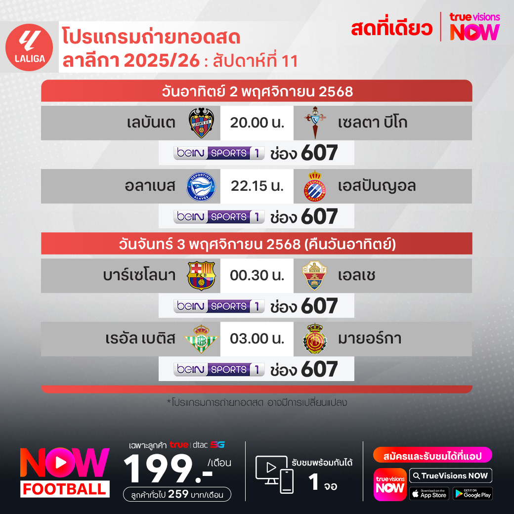 Real Betis vs Mallorca เวลา 03.00-05.00 ทางช่อง beIN 1 (607)