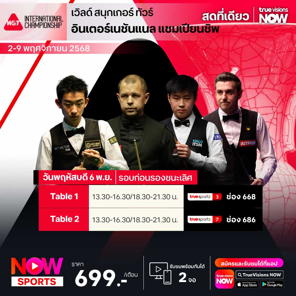เวิลด์ สนุกเกอร์ ทัวร์ สัปดาห์นี้มุ่งหน้าสู่ประเทศจีนอีกครั้ง บรรดานักสอยคิวระดับท็อปมากันแบบครบครัน เพื่อร่วมเก็บคะแนนสะสมและลุ้นแชมป์ในรายการใหญ่อย่าง อินเตอร์เนชั่นแนล แชมเปี้ยนชิพ 2025 ที่เมืองหนานจิง ลุ้นกันแบบไม้ต่อไม้ เฟรมต่อเฟรม แมตช์ต่อแมตช์ เกมที่ไม่มีที่ว่างสำหรับผู้แพ้ ใครจะได้ไปต่อถึงตำแหน่งแชมป์ ชมสด ครบทุกรอบ ที่ ทรูวิชั่นส์