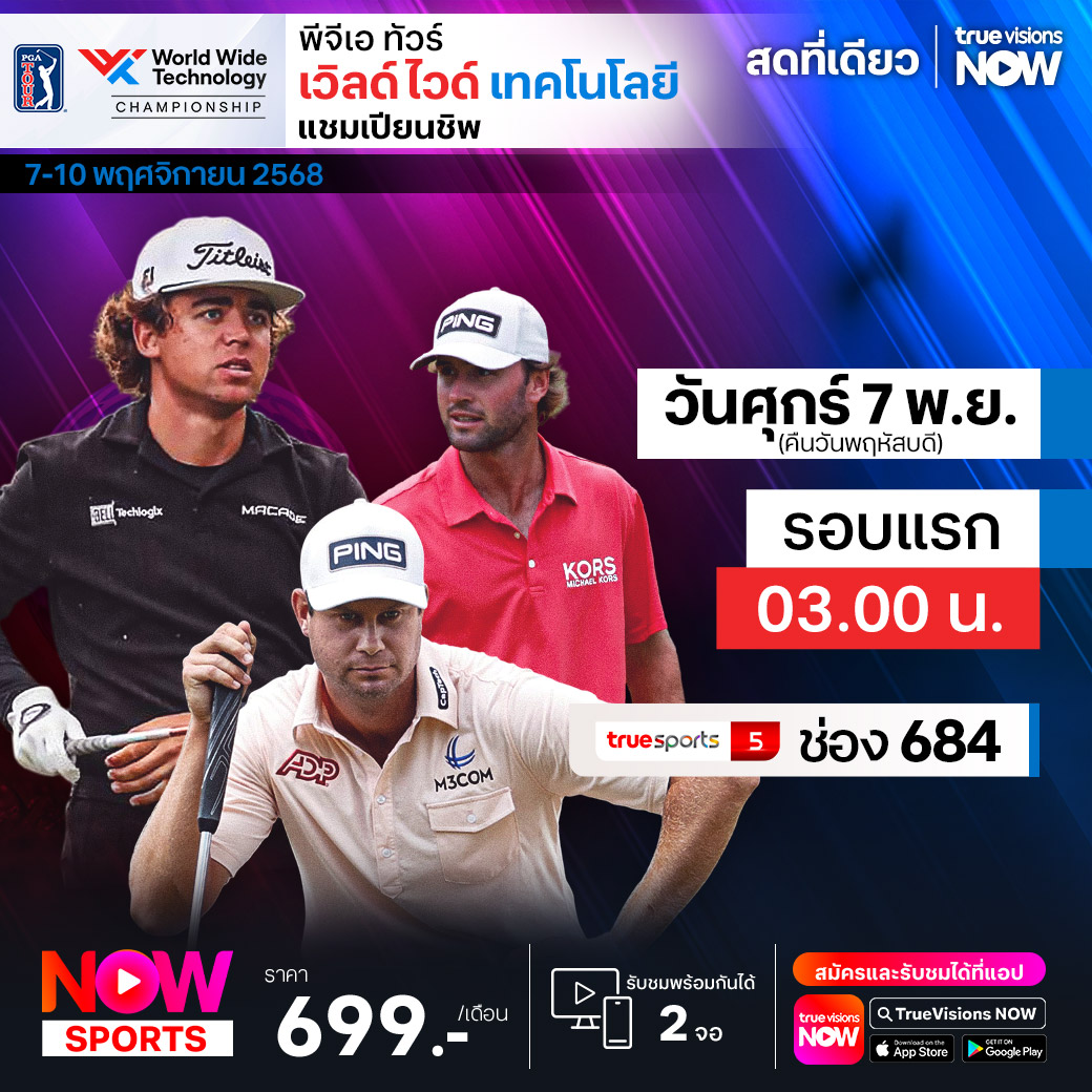 กอล์ฟ พีจีเอ ทัวร์ สัปดาห์นี้พบกับรายการ เวิลด์ ไวด์ เทคโนโลยี แชมเปี้ยนชิพ ที่สนาม เอล การ์โดนัล แอท ดิอาเมนเต้ ในลอส คาโบส ประเทศเม็กซิโก ชิงเงินรางวัลรวม 6,000,000 เหรียญสหรัฐฯ ร่วมชมและเชียร์นักกอล์ฟระดับโลก ใครจะคว้าแชมป์รายการนี้ไปครอง ชมสด ครบทุกรอบ ที่ ทรูวิชั่นส์