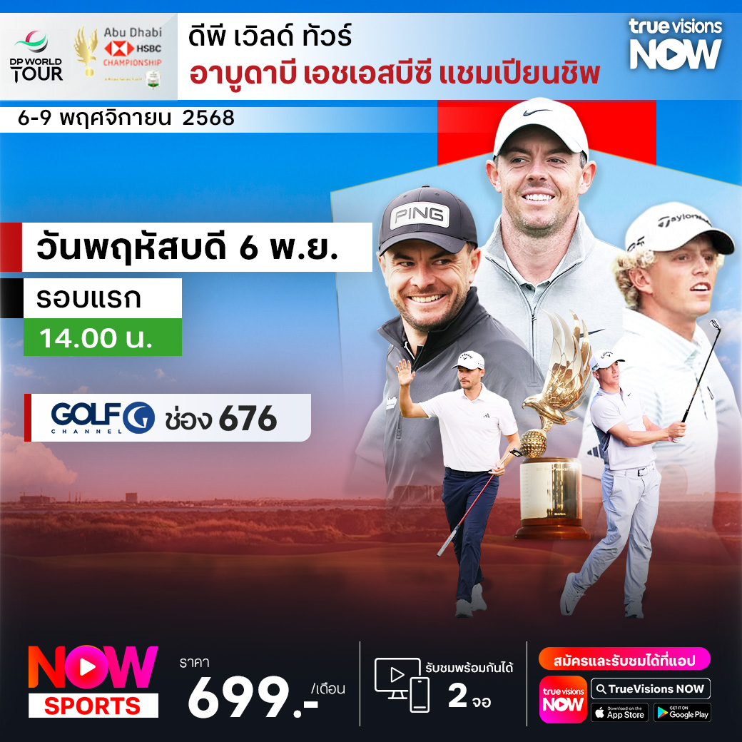 กอล์ฟ ดีพี เวิลด์ ทัวร์ สัปดาห์นี้ พบกับความมันส์และความยิ่งใหญ่ในระดับ โรเล็กซ์ ซีรี่ส์ ที่ตะวันออกกลาง กับรายการที่อยู่คู่กับทัวร์มาอย่างยาวนาน อาบูดาบี เอชเอชบีซี แชมเปี้ยนชิพ จากสนาม ยาส ลิงค์ส กอล์ฟ คลับ ที่เมืองอาบูดาบี ประเทศสหรัฐอาหรับเอมิเรตส์ ร่วมลุ้นกันว่าใครจะได้ชูโทรฟี่ชนะเลิศ ชมสด ครบทุกรอบ ที่ ทรูวิชั่นส์