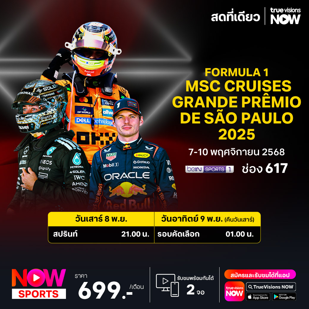 สนามท้าทายของฤดูกาล แฟนๆ กีฬาความเร็วพลาดไม่ได้ กับความเข้มข้นดุเดือดของ ฟอร์มูล่า วัน เวิลด์ แชมเปี้ยนชิพ ที่การลุ้นแชมป์ประเภทนักแข่งยังคงสูสี สถานการณ์มีโอกาสพลิกผันได้ ทุกคะแนนจากนี้ไปมีความหมายและสำคัญเป็นอย่างยิ่ง สัปดาห์นี้ พบกับการแข่งขัน รายการ กรังด์ปรีซ์ ออฟ เซา เปาโล ที่ประเทศบราซิล จับตาสามตัวเต็ง ออสการ์ นอร์ริส, ออสการ์ ปิแอสทรี่ และ แชมป์โลก แม็กซ์ เวอร์สแท็ปเพน ชมสด ครบทุกช่วงแข่งขัน ที่ ทรูวิชั่นส์