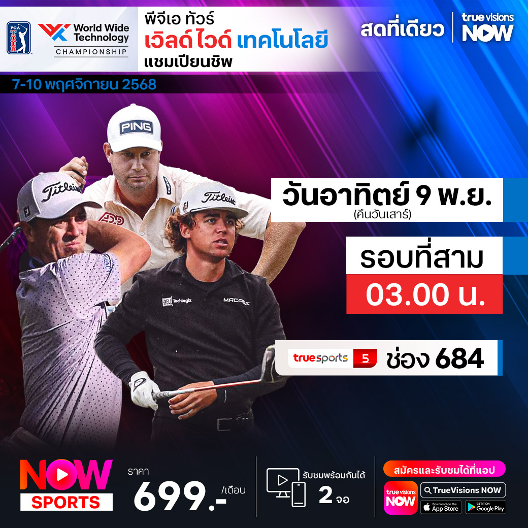 กอล์ฟ พีจีเอ ทัวร์ สัปดาห์นี้พบกับรายการ เวิลด์ ไวด์ เทคโนโลยี แชมเปี้ยนชิพ ที่สนาม เอล การ์โดนัล แอท ดิอาเมนเต้ ในลอส คาโบส ประเทศเม็กซิโก ชิงเงินรางวัลรวม 6,000,000 เหรียญสหรัฐฯ ร่วมชมและเชียร์นักกอล์ฟระดับโลก ใครจะคว้าแชมป์รายการนี้ไปครอง ชมสด ครบทุกรอบ ที่ ทรูวิชั่นส์