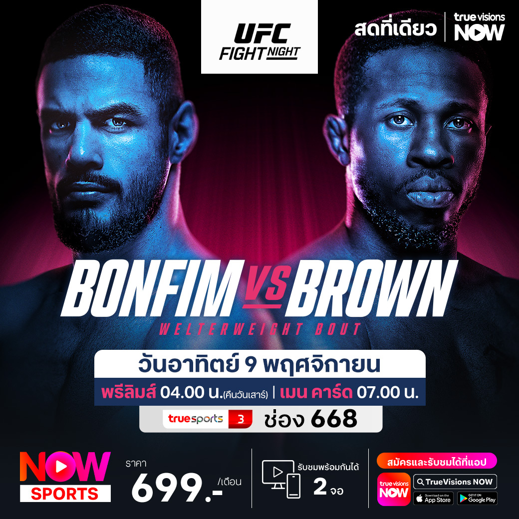 ดุเดือดต่อเนื่อง กับศึกเอ็มเอ็มเอ อันดับหนึ่งของโลก สัปดาห์นี้ ยูเอฟซี ไฟต์ ไนท์ ยังปักหลักที่ ยูเอฟซี เอเพ็กซ์ ลาสเวกัส รัฐเนวาด้า คู่เอกพิกัดรุ่นเวลเตอร์เวต เกเบรียล บอนฟิม นักสู้แซมบ้า เจ้าของสถิติ ชนะ 18 แพ้แค่ 1 พบกับนักสู้จากจาไมก้า แรนดี้ บราวน์ และคู่เอกร่วม เอเดรียน ยาเนส พบ คริสเตียน กีโนเนซ ชมสด ที่ ทรูวิชั่นส์