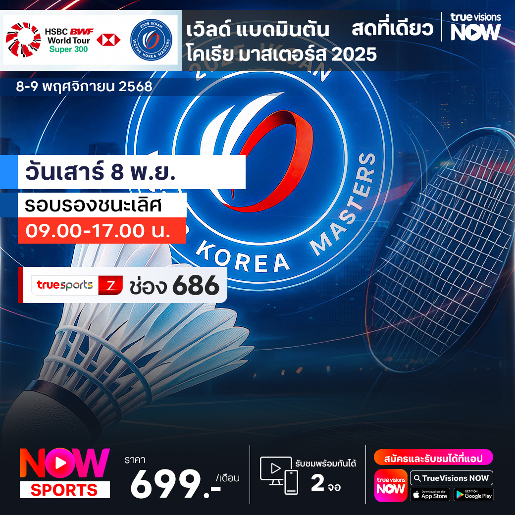สู่ทวีปเอเชียกันแบบยาวๆ จนจบฤดูกาล สัปดาห์นี้ไปกันที่ศึกแห่งศักดิ์ศรี โคเรีย มาสเตอร์ส ที่ประเทศเกาหลีใต้ ร่วมส่งใจเชียร์นักแบดระดับโลก เพื่อลุ้นเก็บชัยชนะและคว้าแชมป์ไปครอง ชมสด ที่ ทรูวิชั่นส์