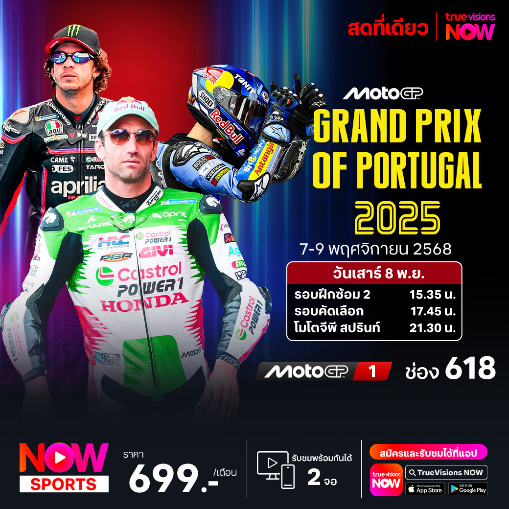 ยิ่งใกล้จบฤดูกาล เกมยิ่งสนุก ศึกเจ้าความเร็วประเภทสองล้อชิงแชมป์โลก โมโต จีพี เวิลด์ แชมเปี้ยนชิพ เดินทางกลับมาสู่ช่วงสุดท้ายของปีที่ทวีปยุโรปอีกครั้ง กับสนามรองสุดท้าย กรังด์ปรีซ์ ออฟ ปอร์ตูกัล ที่สังเวียน อัลการ์ฟ อินเตอร์เนชั่นแนล เซอร์กิต ประเทศโปรตุเกส ลุ้นกันสุดมันส์ ใส่กันแบบไม่มียั้งทั้ง โมโต 3, โมโต 2 และมันส์ทะลุไมล์กับรุ่นยอดนิยม โมโต จีพี ติดตามกันว่า ใครจะยึดตำแหน่งบนโพเดี้ยม ชมสด ครบทุกช่วงแข่งขัน ที่ ทรูวิชั่นส์