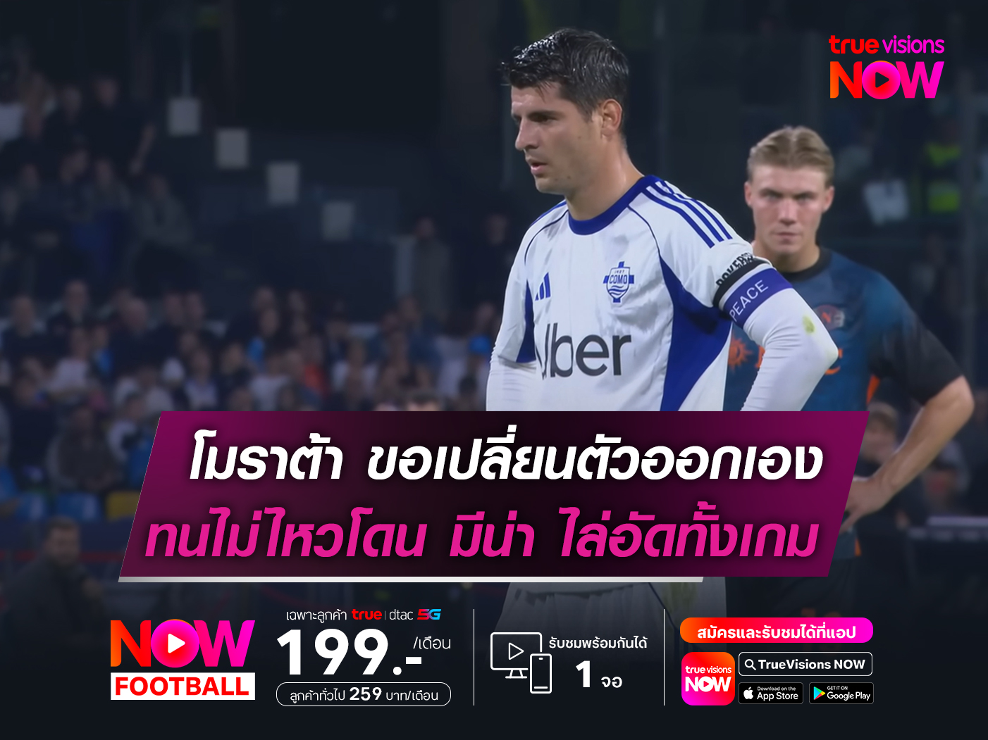 สำหรับ โมราต้า ยังคงปืนฝืดในศึก กัลโช่ เซเรีย อา ฤดูกาลนี้ หลังยังยิงประตูไม่ได้เลยจากการลงสนามหลายเกม โดยโปรแกรมถัดไป โคโม่ มีคิวบุกเยือน โตริโน่ ในวันที่ 24 พฤศจิกายนนี้
