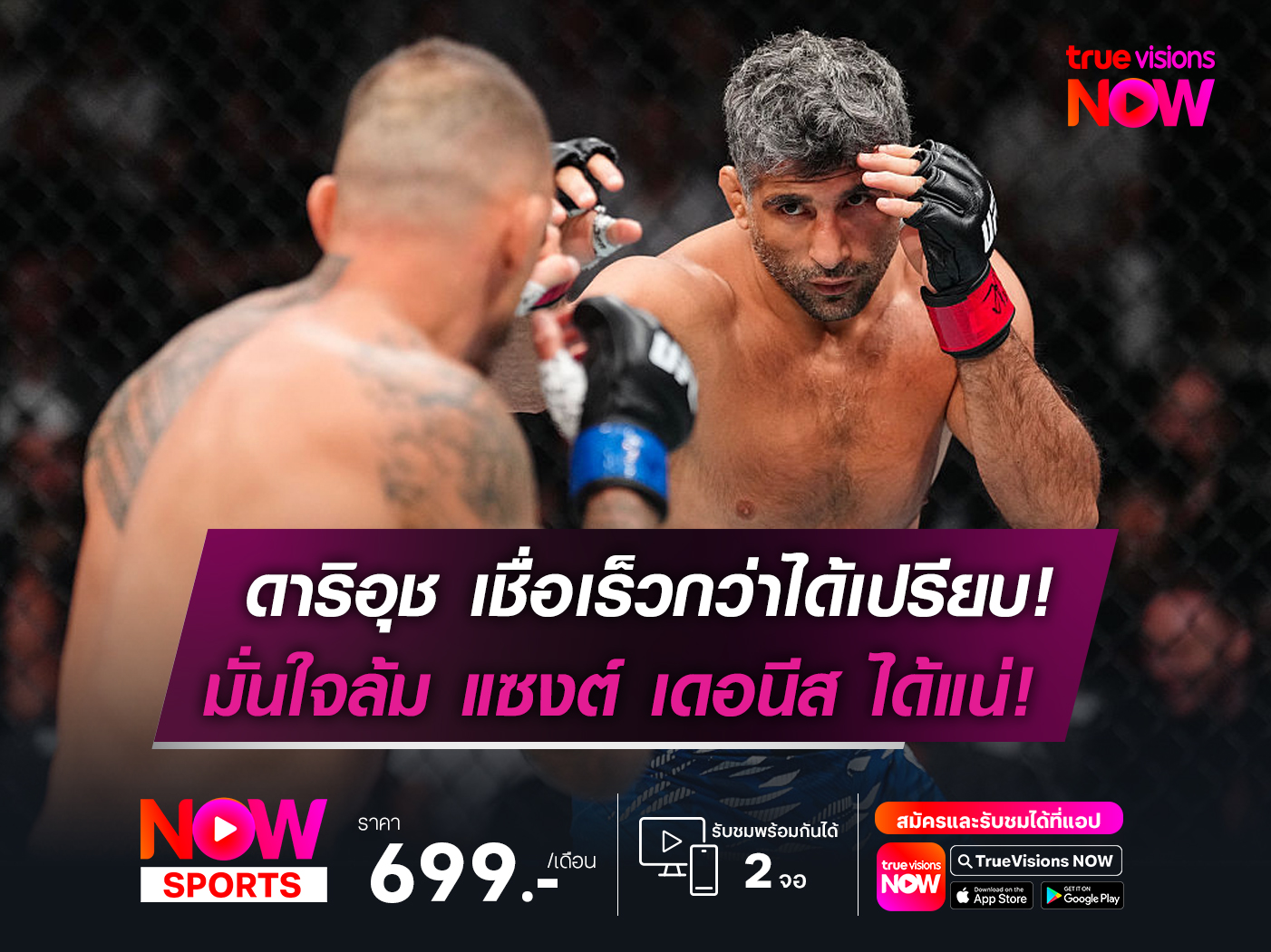 สำหรับการต่อสู้ภายใต้รายการ UFC 322 : DELLA MADDALENA VS MAKHACHEV จะระเบิดศึก ณ สังเวียน เมดิสัน สแควร์ การ์เดน, นิวยอร์ก,สหรัฐอเมริกา ในวันอาทิตย์ที่ 16 พฤศจิกายน นี้ คู่หลักของรายการเริ่มเวลา 10.00 น. ตามเวลาประเทศไทย โดยแฟนหมัดมวยชาวไทยติดตามชมได้ทางช่อง TRUE SPORTS HD3 (668)