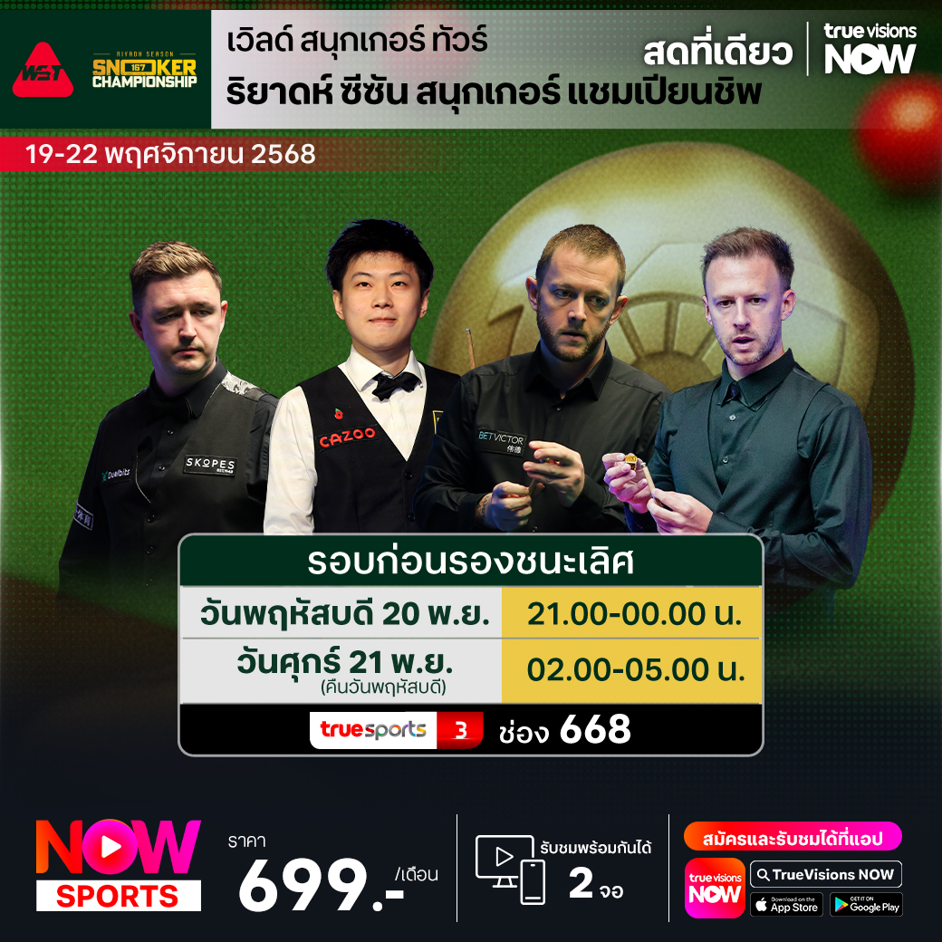 อะไรจะเกิดขึ้น เมื่อสุดยอดนักสนุกเกอร์ที่เก่งที่สุดในโลก 10 คน มารวมตัวกัน นำโดย รอนนี่ โอซัลลิแวน และแชมป์เก่า มาร์ค อัลเลน เพื่อวัดความคมและความแม่น ในการแข่งขัน รายการที่แฟนๆ ทั่วโลกเฝ้ารอคอย ในศึก เวิลด์ สนุกเกอร์ ทัวร์ รายการ ริยาดห์ ซีซั่น สนุกเกอร์ แชมเปี้ยนชิพ ที่เจ้าภาพทุ่มทุนแบบไม่อั้นกับเงินรางวัลล่อใจ และเพิ่มเติมโบนัสถึง 1 ล้านเหรียญสหรัฐฯ สำหรับการทำแม็กซิมั่มเบรก 167 คะแนน ที่มีแค่รายการนี้รายการเดียว ชมสด ครบทุกรอบ ที่ ทรูวิชั่นส์