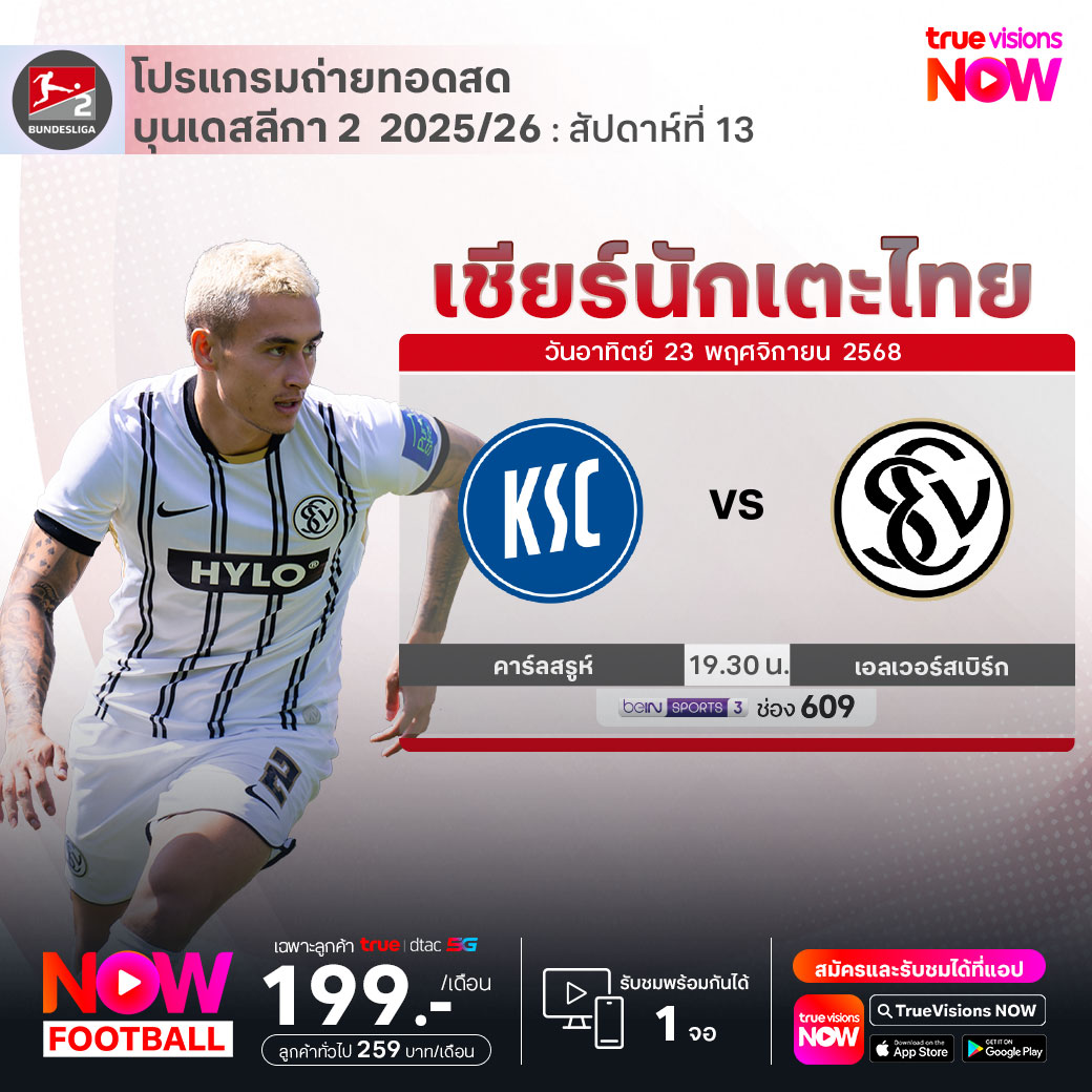 Karlsruher vs Elversberg เวลา 19.30-21.30 ทางช่อง beIN 3 (609)