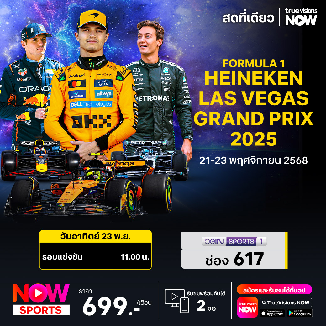 ยิ่งใกล้จบฤดูกาล ยิ่งตื่นเต้นเร้าใจ เพราะมีตำแหน่งแชมป์โลกของปี 2025 ประเภทนักแข่งเป็นเดิมพัน สำหรับศึก ฟอร์มูล่า วัน เวิลด์ แชมเปี้ยนชิพ สัปดาห์นี้พบกับรายการที่เปี่ยมไปด้วยเสน่ห์ที่เป็นเอกลักษณ์ ลาส เวกัส กรังด์ปรีซ์ จับตาดูนักแข่ง 3 อันดับแรกของคะแนนสะสม แลนโด นอร์ริส, ออสการ์ ปิแอสทรี่ และแชมป์ 4 สมัยล่าสุด แม็กซ์ เวอร์สแท็ปเพ่น ว่าใครจะคว้าชัย ชมสด ทุกช่วงการแข่งขัน ที่ ทรูวิชั่นส์