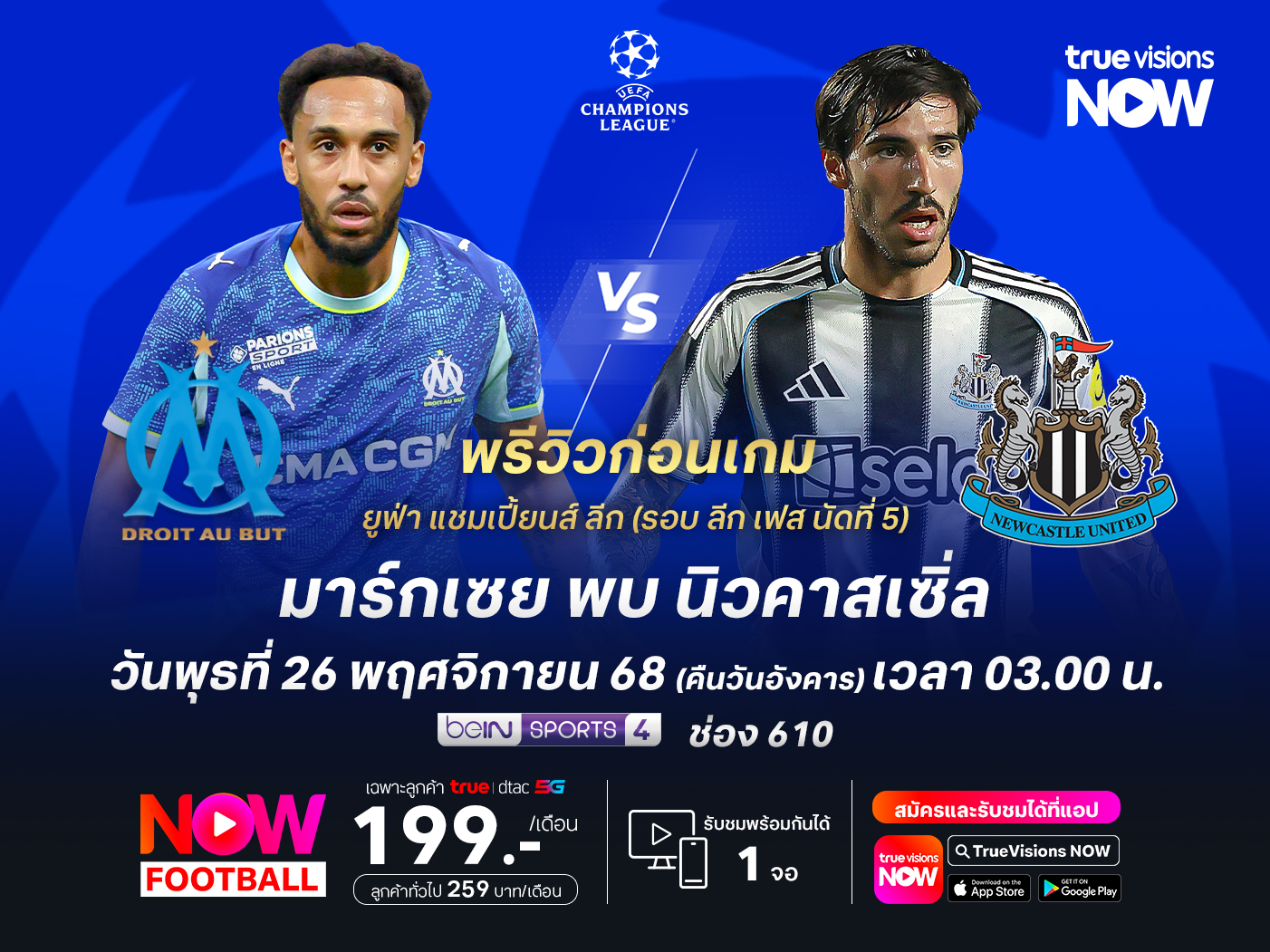 ศึก ยูฟ่า แชมเปี้ยนส์ ลีก 2025-26 รอบ ลีก เฟส นัดที่ห้า โอลิมปิก มาร์กเซย จากฝรั่งเศส จะเล่นที่ สต๊าด เวโลโดรม รับการมาเยือนของ นิวคาสเซิ่ล ยูไนเต็ด จากอังกฤษ โดยเกมนี้ มาร์กเซย เจ้าถิ่น กลับมาอยู่ในฟอร์มที่โอเคอีกครั้ง หลังชนะมาตลอดใน 2 นัดหลังสุด ขณะที่ นิวคาสเซิ่ล ก็ไม่ธรรมดา ชนะ 5 จาก 7 เกมหลัง ทำให้เกมนี้น่าจะเป็นเกมที่แลกกันสนุก เพราะสายเกมรุกด้วยกันทั้งคู่ แต่ นิวคาสเซิ่ล ยังมีลุ้นที่จะบุกมาชนะได้มากกว่า