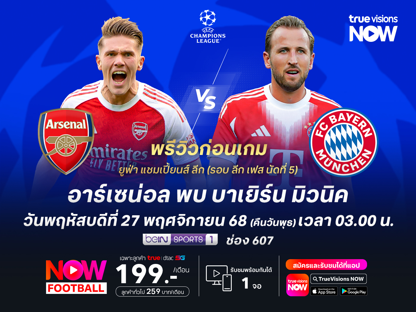 ศึก ยูฟ่า แชมเปี้ยนส์ ลีก 2025-26 รอบ ลีก เฟส นัดที่ห้า อาร์เซน่อล จากอังกฤษ จะเล่นที่ เอมิเรตส์ สเตเดี้ยม รับการมาเยือนของ บาเยิร์น มิวนิค จากเยอรมนี โดยเกมนี้ อาร์เซน่อล เจ้าถิ่น ถือว่ากำลังอยู่ในฟอร์มที่สุดยอดมาก หลังไม่แพ้ใครมา 15 เกมติดต่อกันแล้วในทุกรายการ และชนะไปได้ถึง 13 เกม แต่กระนั้น บาเยิร์น ก็มีฟอร์มการเล่นที่สุดยอดไม่แพ้กัน หลังยังเป็นทีมเดียวใน 5 ลีกใหญ่ยุโรปที่ยังไร้พ่าย มีสถิติชนะ 17 เสมอ 1 จาก 18 เกมในทุกรายการ ทำให้เกมนี้น่าติดตามเป็นอย่างมากว่าจะจบลงอย่างไร