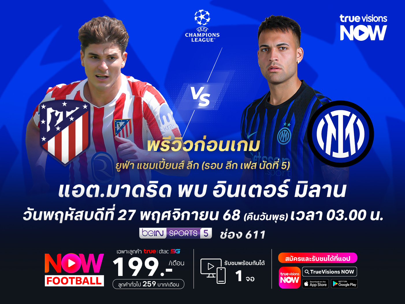 ศึก ยูฟ่า แชมเปี้ยนส์ ลีก 2025-26 รอบ ลีก เฟส นัดที่ห้า แอตเลติโก มาดริด จากสเปน จะเล่นที่ เอสตาดิโอ เมโตร โปลิตาโน่ รับการมาเยือนของ อินเตอร์ มิลาน จากอิตาลี โดยเกมนี้ แอต. มาดริด เจ้าถิ่น ฟอร์มค่อนข้างดีมากในช่วงที่ผ่านมา หลังชนะมาตลอดใน 5 เกมหลังสุด ขณะที่ อินเตอร์ มีแผ่วไปบ้างในช่วงหลัง แต่ในภาพรวมก็ยังถือว่าทำได้ดี ทำให้เกมนี้น่าจะเป็นเกมที่สนุก เนื่องจากเป็นการเจอกันของสองทีมที่มีแนวทางคล้ายๆ กัน