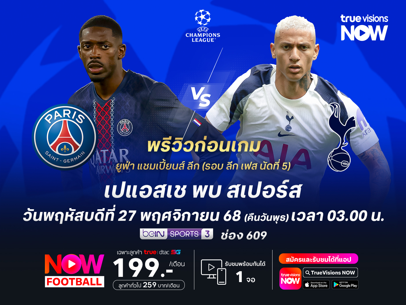 ศึก ยูฟ่า แชมเปี้ยนส์ ลีก 2025-26 รอบ ลีก เฟส นัดที่ห้า ปารีส แซงต์-แชร์กแม็ง จากฝรั่งเศส จะเล่นที่ ปาร์ก เดส์ แพร็งซ์ รับการมาเยือนของ ท็อตแน่ม ฮ็อทสเปอร์ จากอังกฤษ โดยเกมนี้ เปแอสเช เจ้าถิ่น ฟอร์มค่อนข้างดีมากในช่วงที่ผ่านมา หลังชนะ 7 จาก 10 เกมหลังสุดในทุกรายการ ขณะที่ สเปอร์ส ฟอร์มตกลงไปในช่วงหลัง แพ้ 4 จาก 8 นัดหลังสุด ทำให้เป็นเรื่องยากที่จะบุกมามีแต้มกลับออกไปในเกมนี้