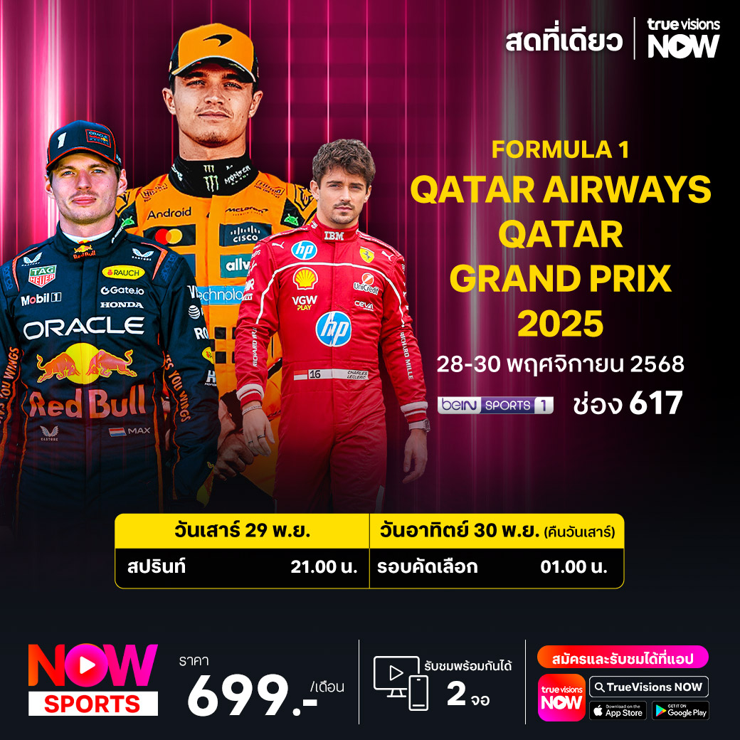 ยิ่งใกล้จบ ยิ่งระทึกใจ กับศึกเจ้าความเร็วระดับโลก ฟอร์มูล่า วัน สนามรองสุดท้ายของฤดูกาล ที่ข้ามทวีปมาดวลความเร็วกันที่ตะวันออกกลาง กับรายการ กาตาร์ กรังด์ปรีซ์ ที่สนาม ลูเซล อินเตอร์เนชั่นแนล เซอร์กิต ประเทศกาตาร์ จับตาดูทีมนำของตารางคะแนนทั้ง แม็คลาเรน, เมอร์เซเดส, เร้ด บูลล์ และ เฟอร์รารี่ วางแผนสู้กันเพื่อชัยชนะแบบไม่มีใครยอมใคร ชมสด ครบทุกช่วงการแข่งขัน ที่ ทรูวิชั่นส์