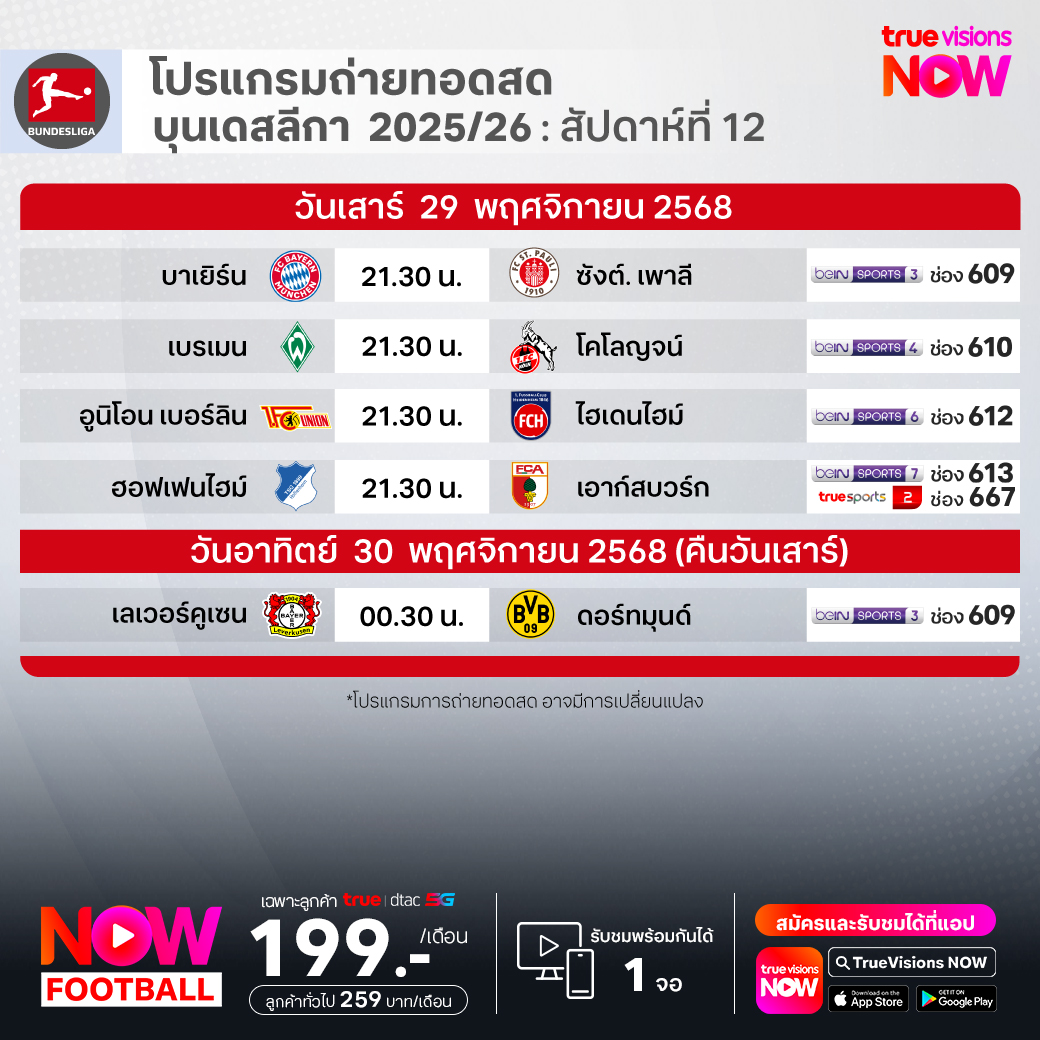 Leverkusen vs Dortmund เวลา 00.30-02.30 ทางช่อง beIN 3 (609)