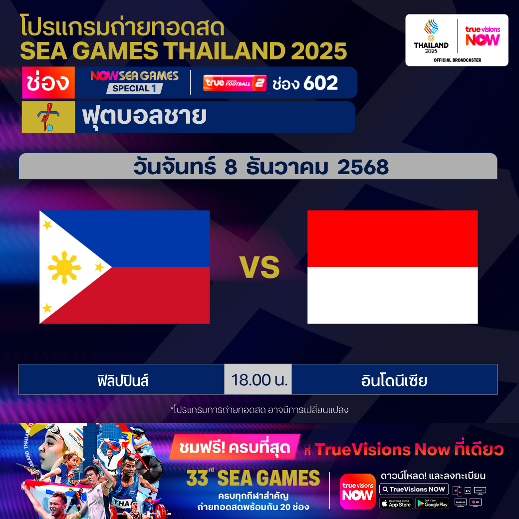 ฟุตบอลชาย ฟิลิปปินส์ พบ อินโดนีเซีย เวลา 18.00 - 20.00