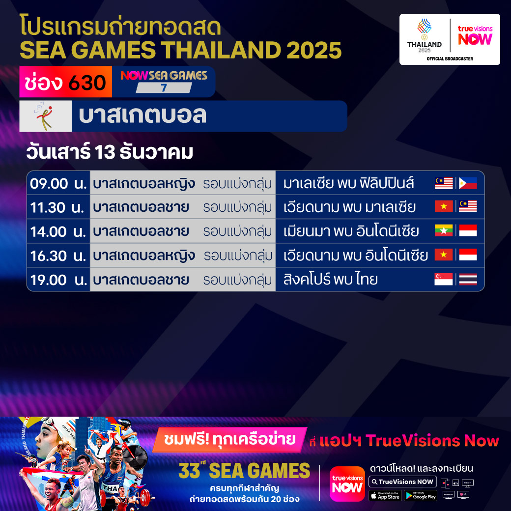 บาสเกตบอลชาย สิงคโปร์ พบ ไทย รอบแบ่งกลุ่ม เวลา 19.00
