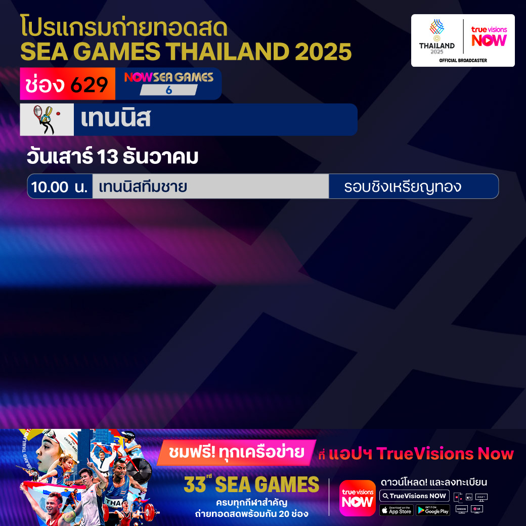 เทนนิสทีมชาย/หญิง รอบชิงเหรียญทอง เวลา 12.00