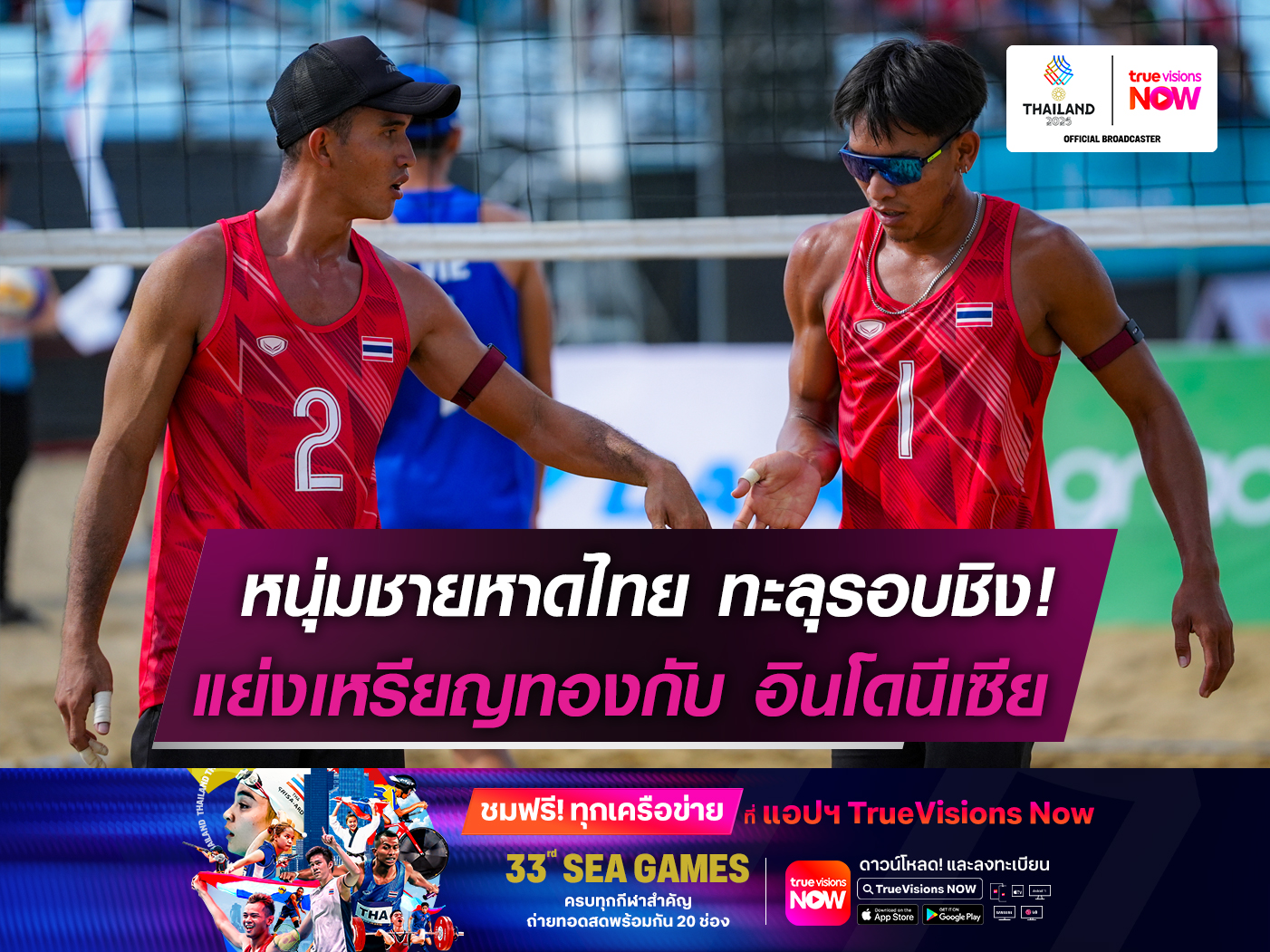 วอลเลย์บอลชายหาดทีมชายไทย โชว์ฟอร์มเฉียบ เอาชนะ เวียดนาม 2-0 คู่ ในรอบรองชนะเลิศ ซีเกมส์ ครั้งที่ 33 ผ่านเข้าชิงเหรียญทอง พบแชมป์เก่า อินโดนีเซีย