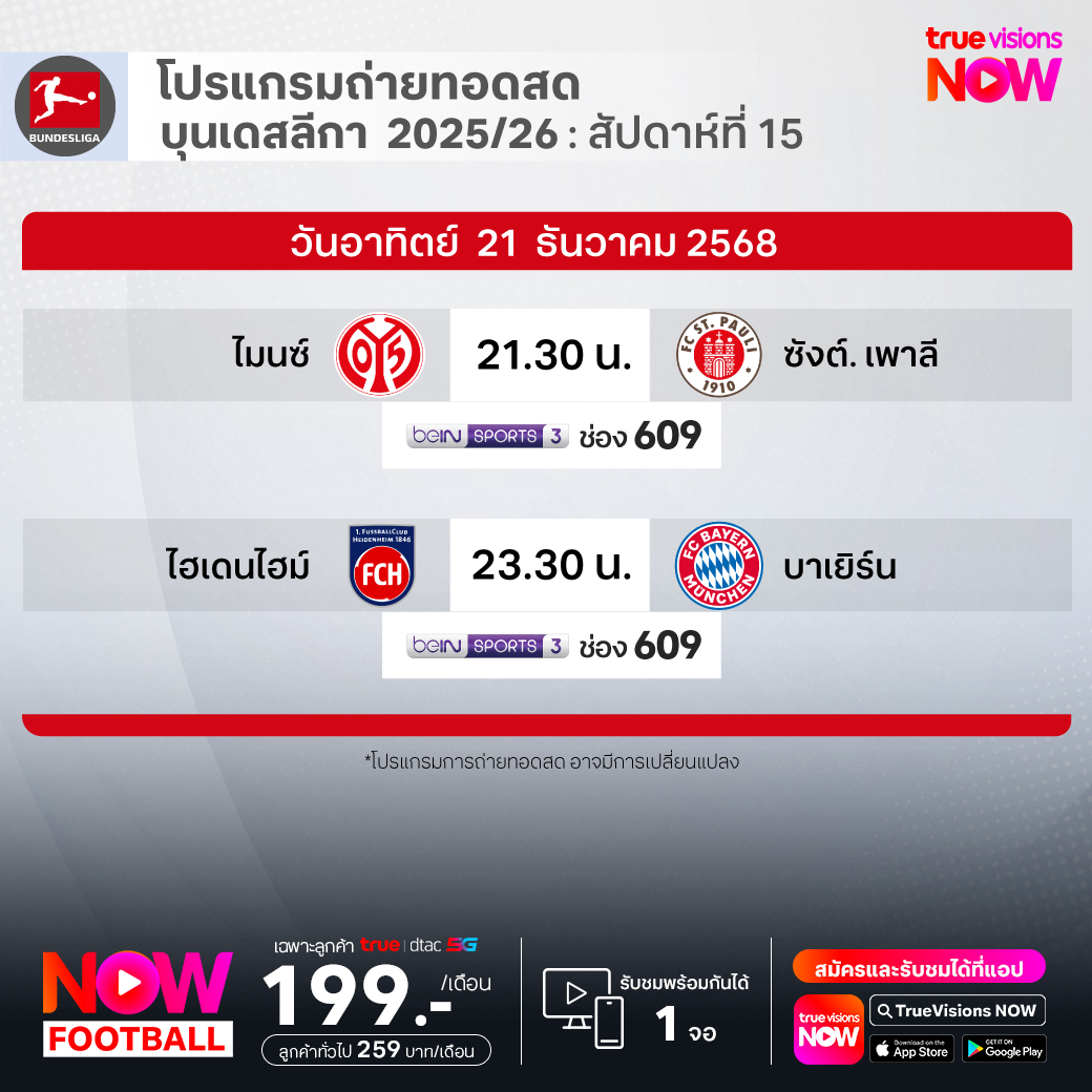 Heidenheim vs Bayern เวลา 23.30-01.30 ทางช่อง beIN 3 (609)
