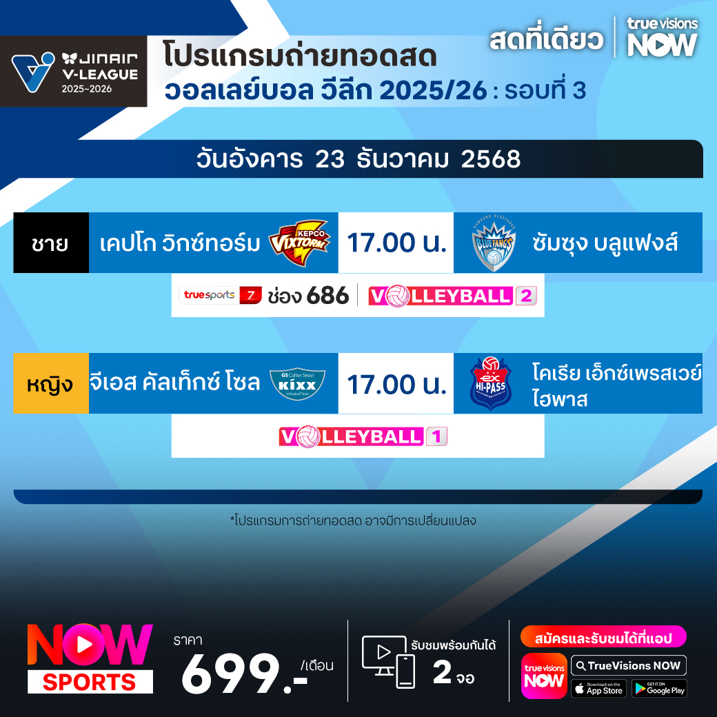 เคปโก วิกซ์ทอร์ม พบ ซัมซุง บลูแฟงส์ เวลา 17.00 ทางช่อง TS 7 (686) / Volleyball 2