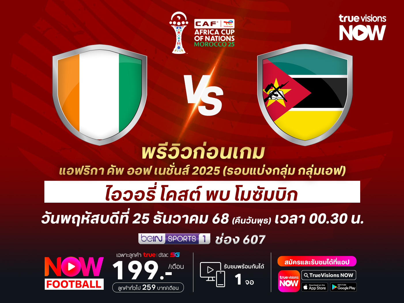 ศึก แอฟริกา คัพ ออฟ เนชั่นส์ 2025 รอบแบ่งกลุ่ม กลุ่มเอฟ นัดแรก ไอวอรี่ โคสต์ จะเล่นที่ มาร์ราเคช สเตเดี้ยม พบกับ โมซัมบิก โดยเกมนี้ ไอวอรี่ โคสต์ แชมป์เก่า มีสภาพทีมที่ค่อนข้างสมบูรณ์ และฟอร์มการเล่นที่ผ่านมาถือว่าค่อนข้างดีมาก พร้อมเต็มที่กับการประเดิมคว้า 3 แต้มแรก ส่วน โมซัมบิก ขุมกำลังและฟอร์มการเล่นดูเป็นรองกว่าเยอะ โอกาสที่จะสร้างเซอร์ไพรส์ในเกมนี้มีไม่มากเท่าไหร่นัก