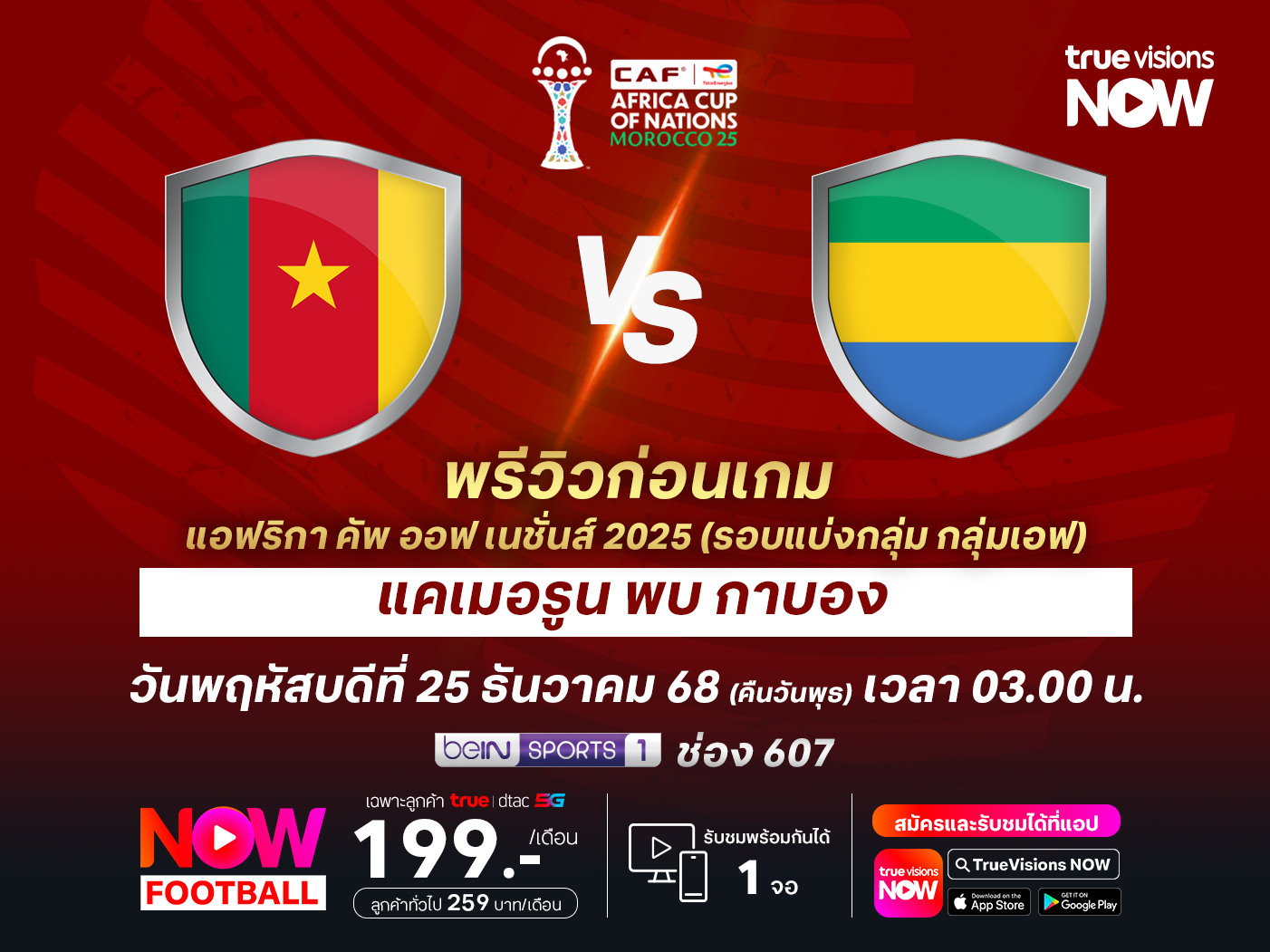 ศึก แอฟริกา คัพ ออฟ เนชั่นส์ 2025 รอบแบ่งกลุ่ม กลุ่มเอฟ นัดแรก แคเมอรูน จะเล่นที่ อาดราร์ สเตเดี้ยม พบกับ กาบอง โดยเกมนี้ แคเมอรูน มีการเปลี่ยนแปลงทีมพอสมควร โดยเน้นไปที่นักเตะสายเลือดใหม่ มากกว่าจะใช้ผู้เล่นตัวเก๋ามากประสบการณ์ ขณะที่ กาบอง แนวรุกขาดตัวหลักอย่าง โอบาเมย็อง ไปน่าจะมีผลพอสมควร ทำให้เกมนี้น่าจะมีความสูสีกันมากกว่าที่คิด และมีโอกาสไม่น้อยที่จะจบลงด้วยการเสมอกัน
