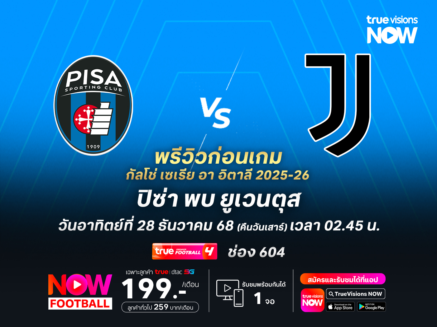 ศึก กัลโช่ เซเรีย อา อิตาลี 2025-26 ปิซ่า จะเล่นที่ อารีน่า การิบัลดี้ รับการมาเยือนของ ยูเวนตุส โดยเกมนี้ ปิซ่า เจ้าถิ่น กำลังอยู่ในฟอร์มที่ย่ำแย่ หลังเพิ่งชนะได้แค่เกมเดียวเท่านั้นใน เซเรีย อา จากการลงเล่นทั้งหมด 16 เกม รั้งอยู่อันดับรองบ๊วยของตาราง ขณะที่ ยูเวนตุส ฟอร์มยอดเยี่ยมมากในช่วงที่ผ่านมา แพ้แค่เกมเดียวจาก 12 นัดหลัง และยังชนะไปได้ถึง 8 เกม จนทำให้ขยับเข้าใกล้พื้นที่ท็อป 4 เหลือแค่แต้มเดียวเท่านั้น
