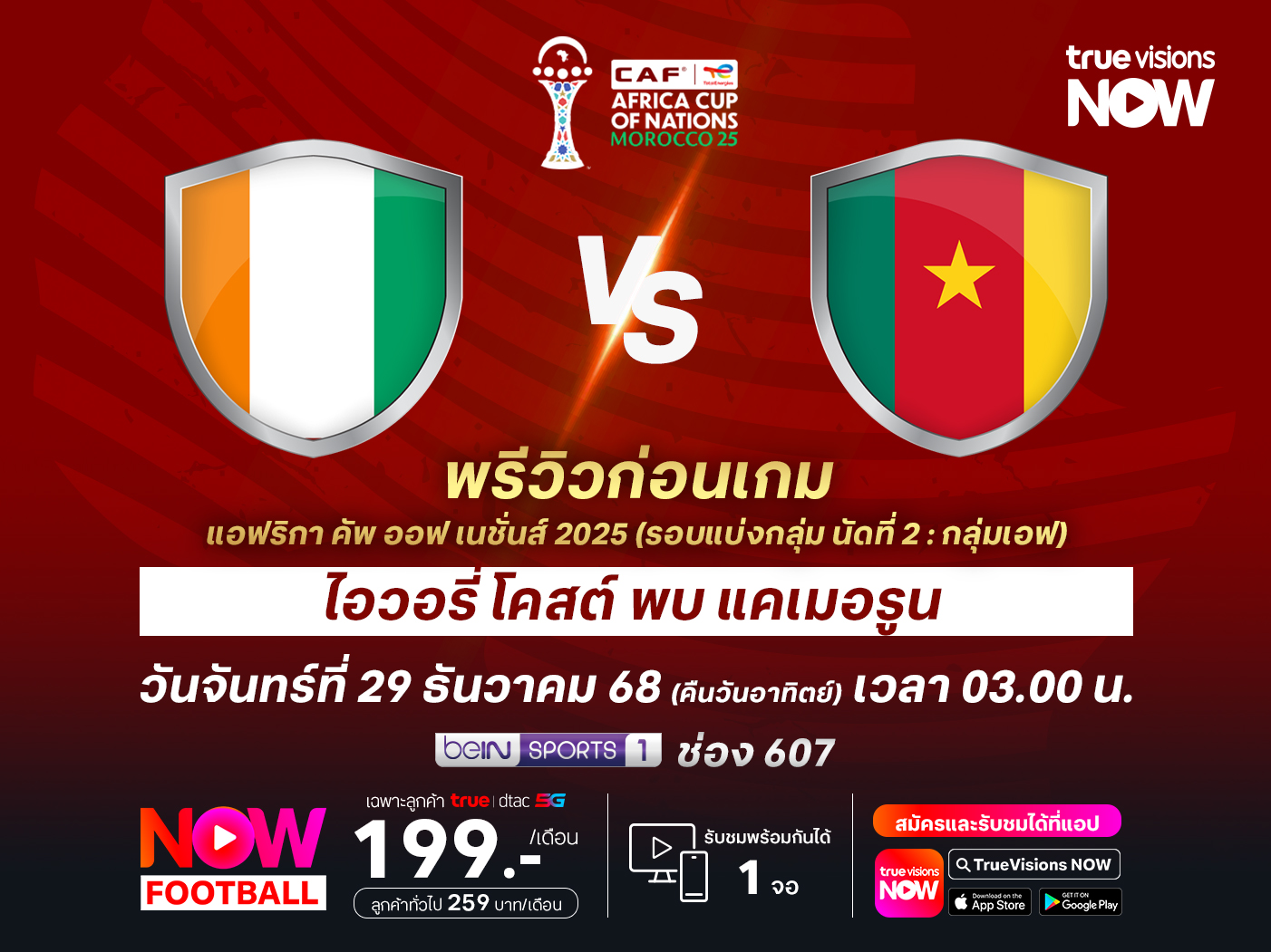 ศึก แอฟริกา คัพ ออฟ เนชั่นส์ 2025 รอบแบ่งกลุ่ม กลุ่มเอฟ นัดที่สอง ไอวอรี่ โคสต์ จะเล่นที่ มาร์ราเคช สเตเดี้ยม พบกับ แคเมอรูน โดยเกมนี้ ไอวอรี่ โคสต์ มีสภาพทีมที่ค่อนข้างพร้อม หลังเกมแรกชนะ โมซัมบิก มาแบบไม่ยากนัก ส่วน แคเมอรูน เก็บชัยนัดแรกได้เช่นกัน แต่เกมนี้อาจจะไม่มี คาร์ลอส บาเลบา ในแดนกลางที่เจ็บ ซึ่งการเจอกับ ไอวอรี่ โคสต์ เป็นเหมือนเกมตัดสินว่าใครจะเป็นแชมป์กลุ่มอย่างแท้จริง