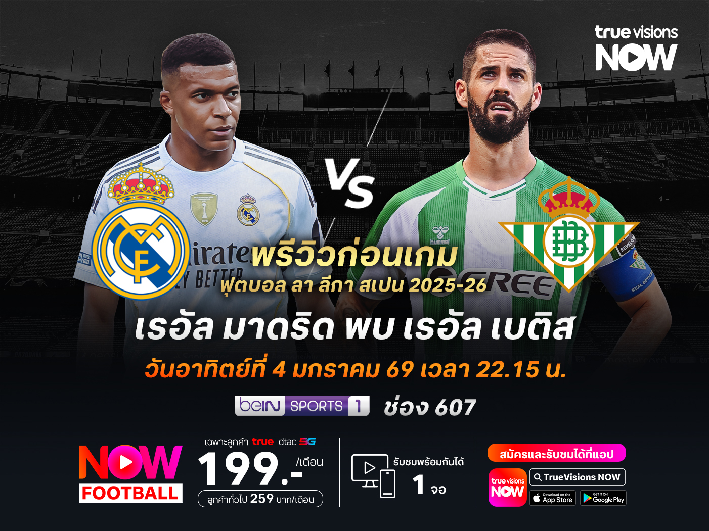 ถ่ายทอดสดทาง : beIN Sports 1 (ช่อง 607)