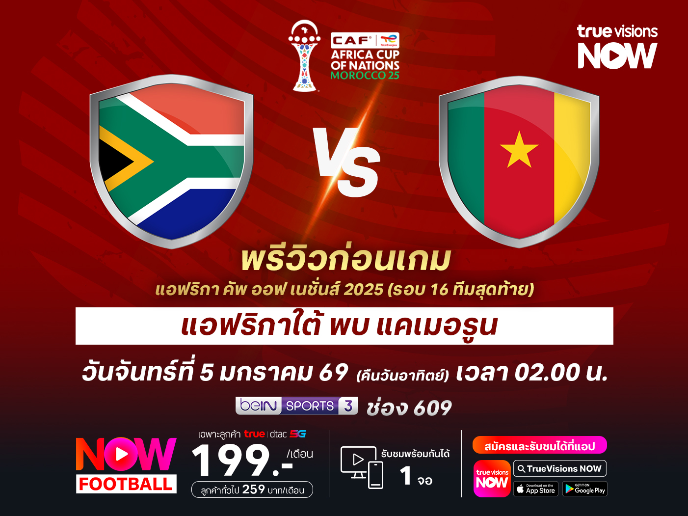 ศึก แอฟริกา คัพ ออฟ เนชั่นส์ 2025 รอบ 16 ทีมสุดท้าย แอฟริกาใต้ จะเล่นที่ อัล เมดิน่า สเตเดี้ยม พบกับ แคเมอรูน โดยเกมนี้ แอฟริกาใต้ มีฟอร์มการเล่นที่แข็งแกร่ง พวกเขาคาดหวังเป็นอย่างยิ่งว่าจะไปได้ไกลในทัวร์นาเมนท์นี้ ขณะที่ แคเมอรูน ดูจะมีประสบการณ์มากกว่า แต่ในความเป็นจริงทีมชุดนี้แทบไม่เหลือตัวเก๋าอยู่ในทีม ทำให้เกมนี้น่าจะเป็นเกมที่สู้กันสูสี และมีแนวโน้มที่ใน 90 นาทีจะยังทำอะไรกันไม่ได้